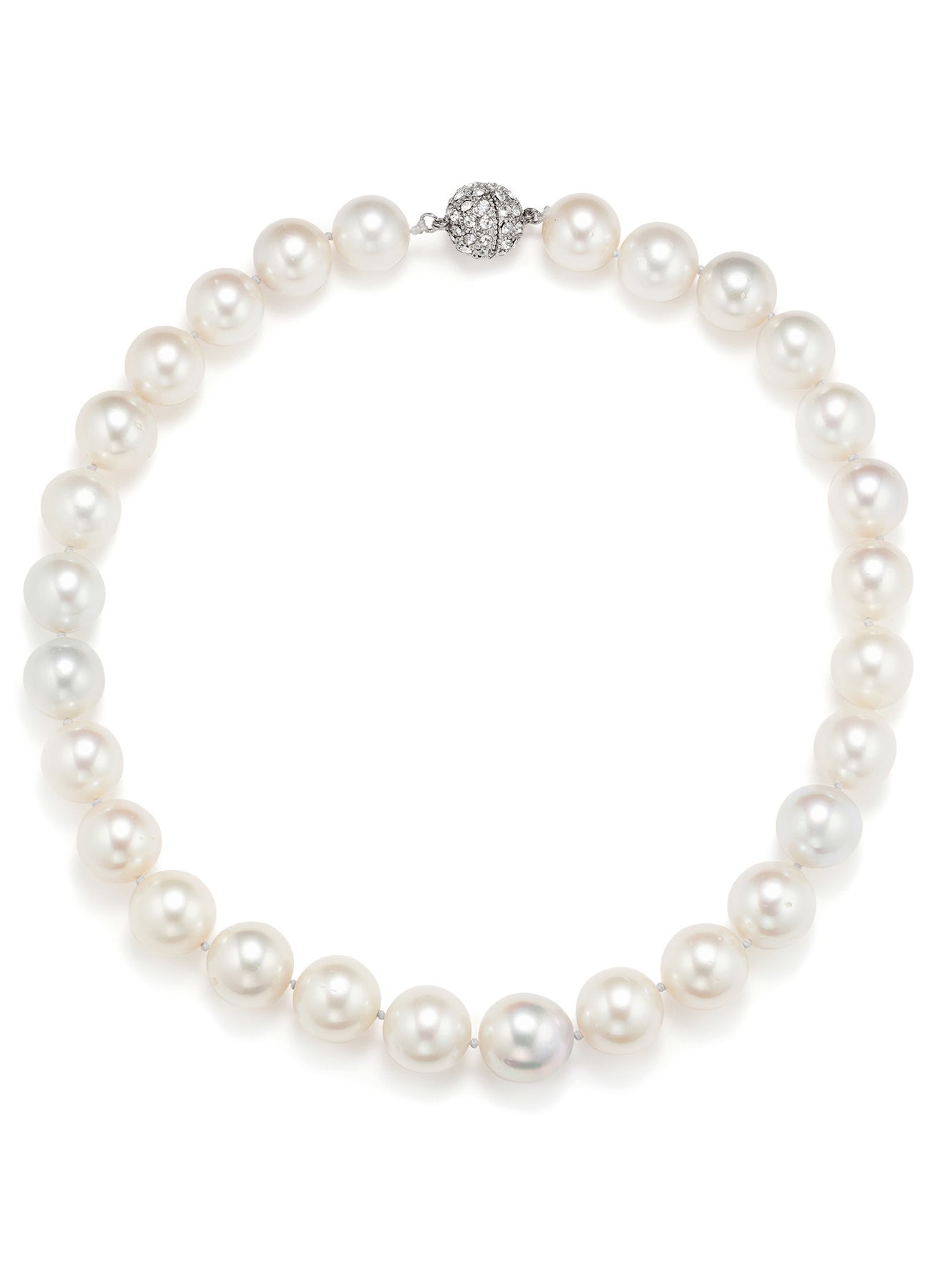 Near round South Sea cultured pearls, 16.32 - 14.72 mm