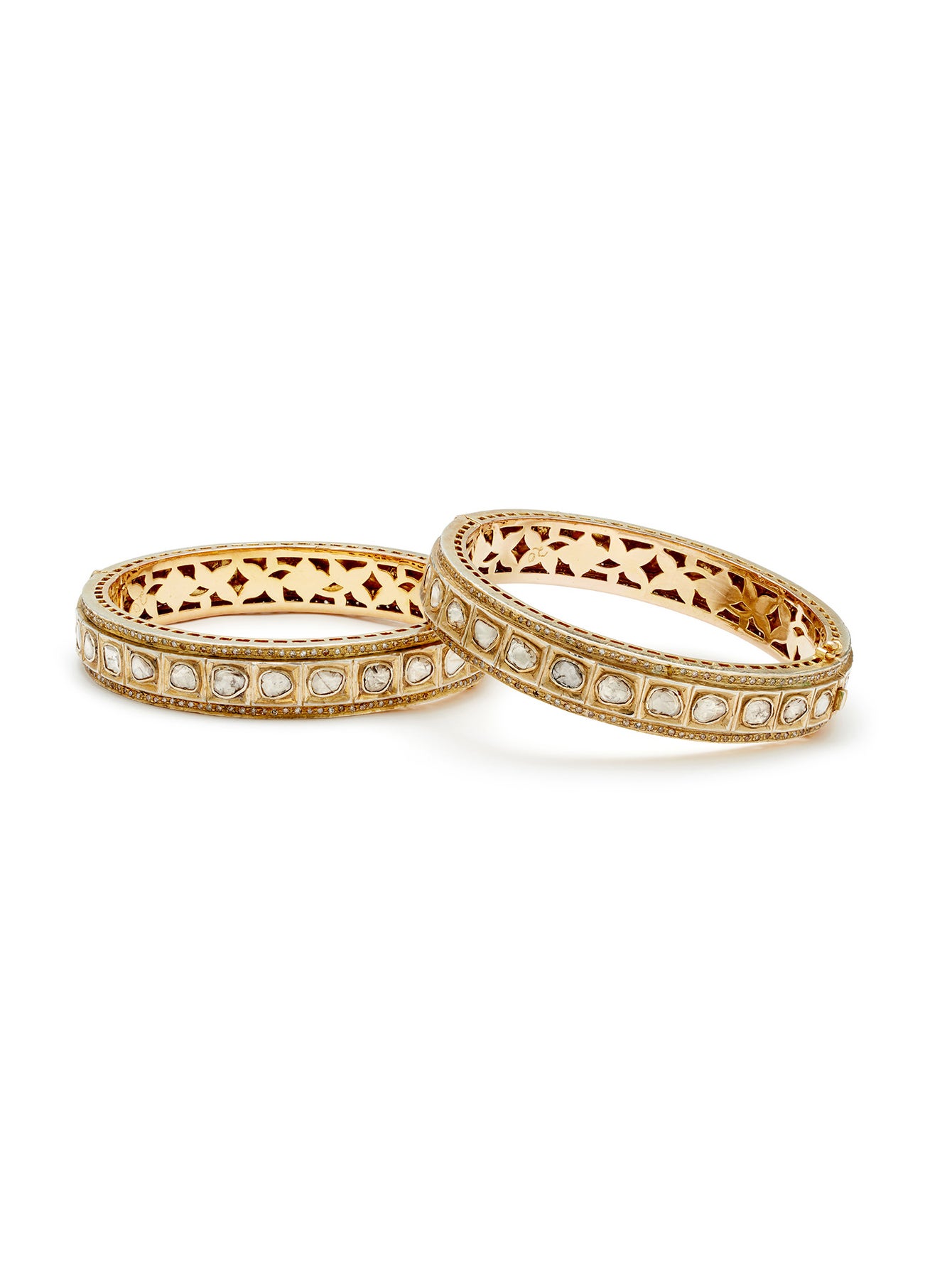 A Pair of Diamond, Gold and Silver Bangles