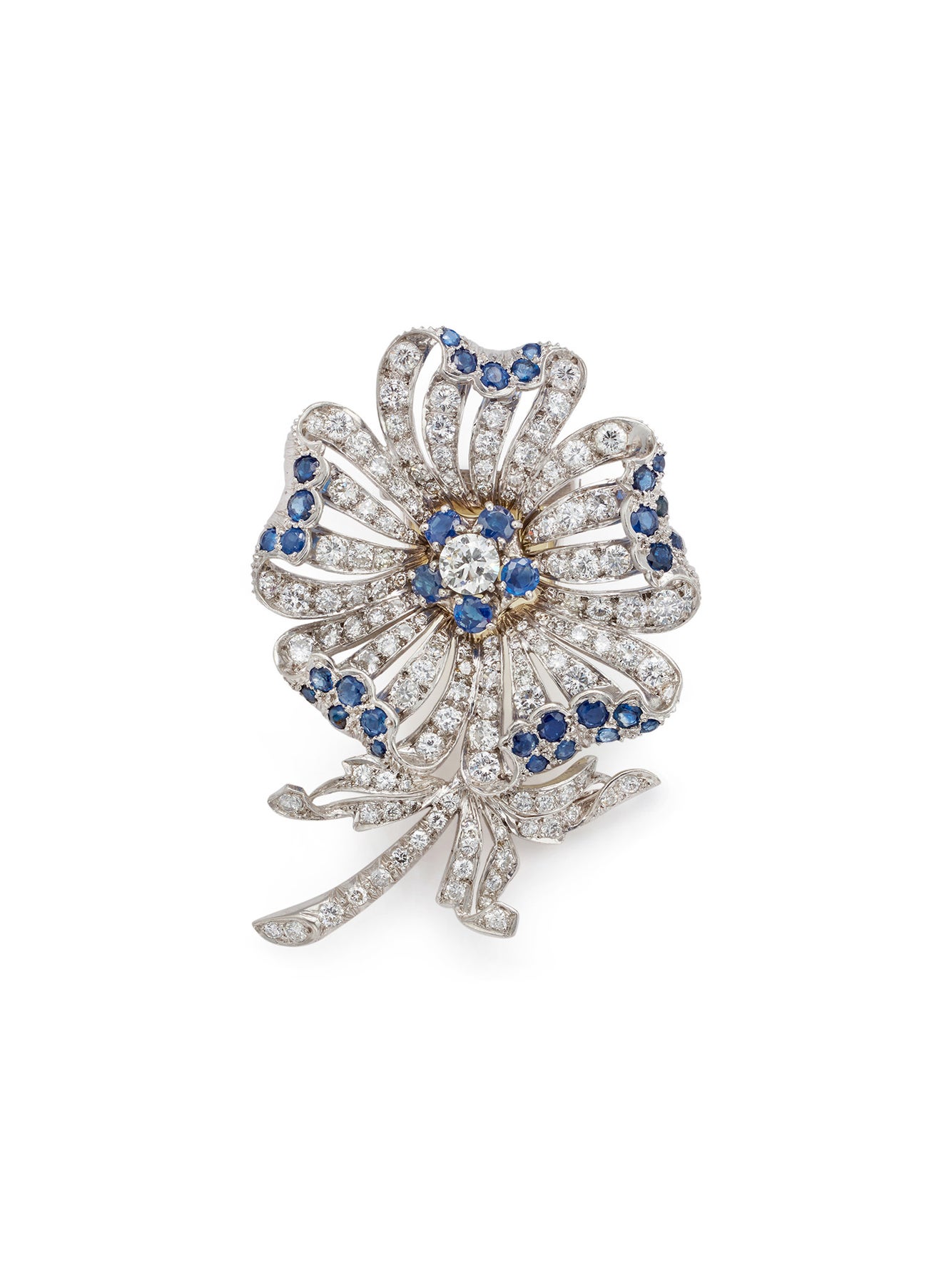 A Diamond. Sapphire and Gold Brooch