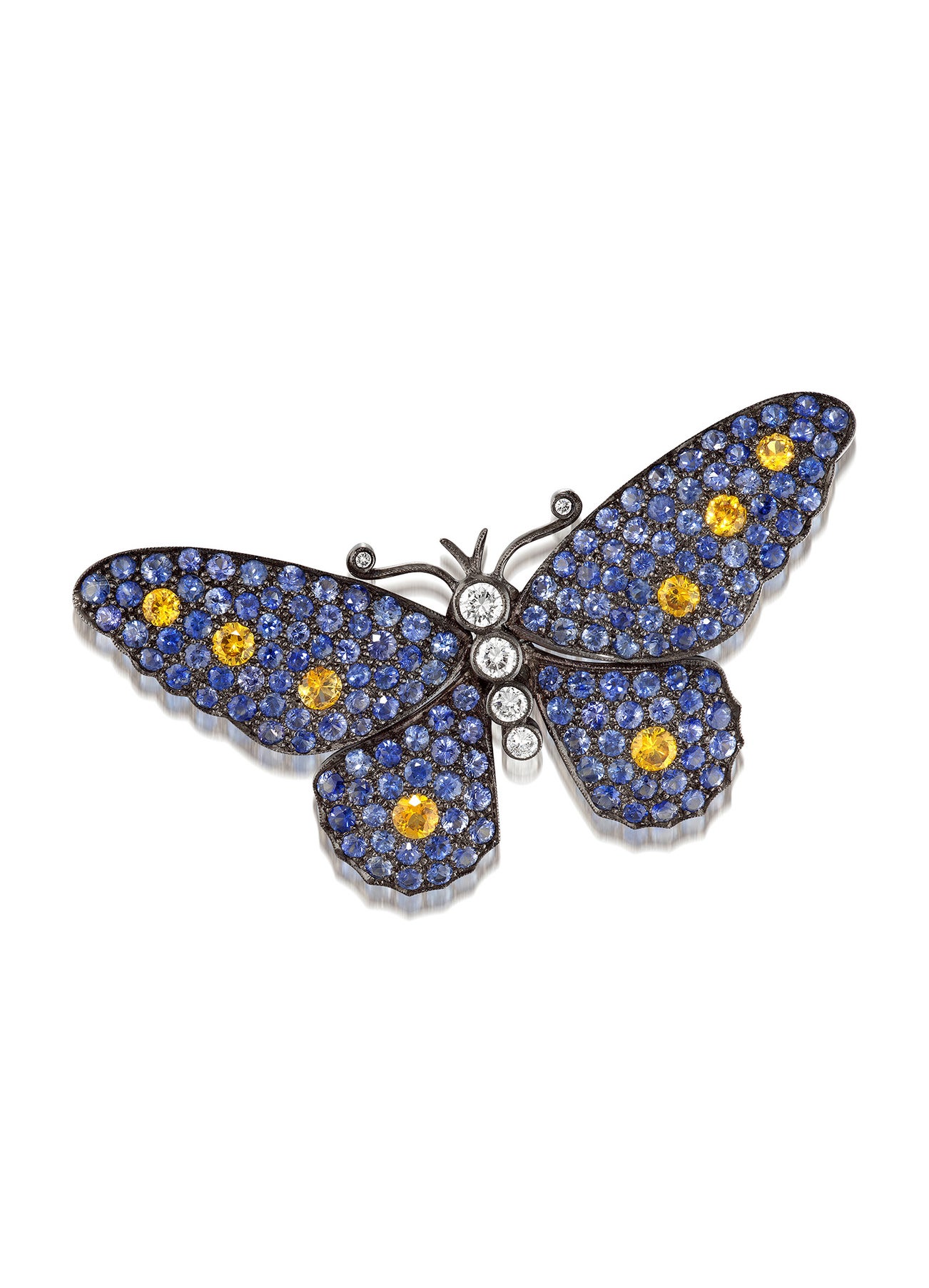 A Coloured Sapphire and Diamond 'Butterfly' Brooch