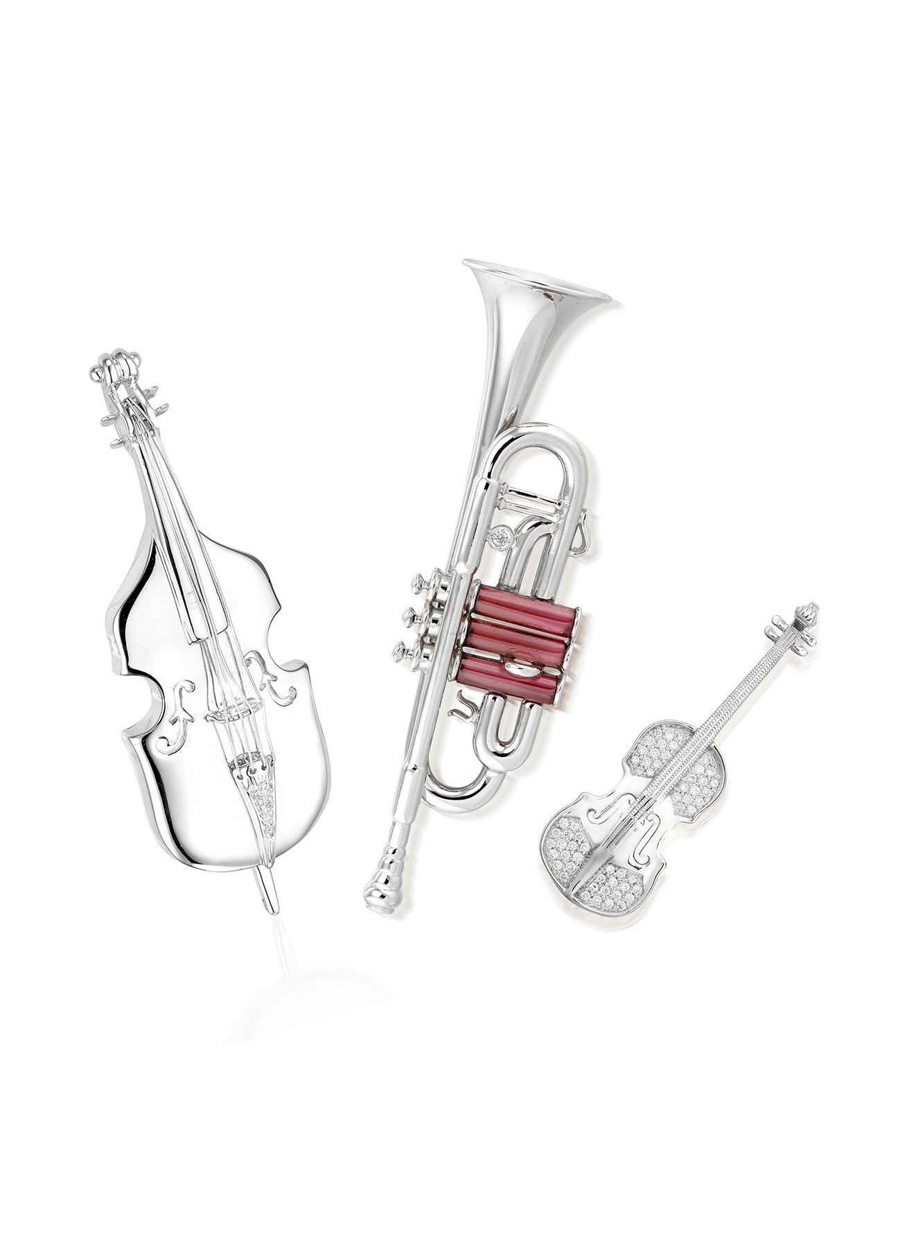 A Group of White Gold, Diamond and Gem-set ‘Instrument’ Brooches