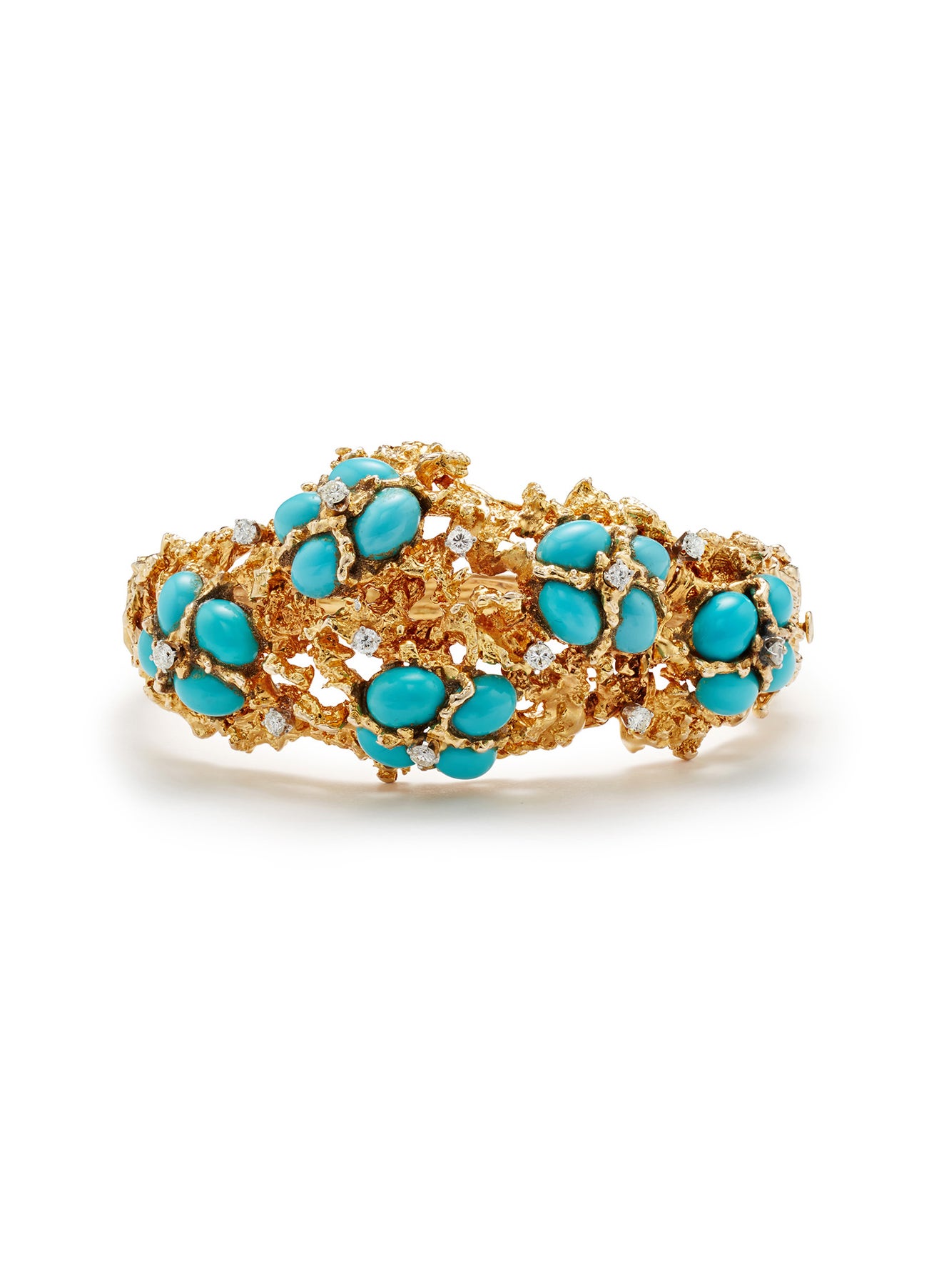A Turquoise, Diamond and Gold Bangle Bracelet