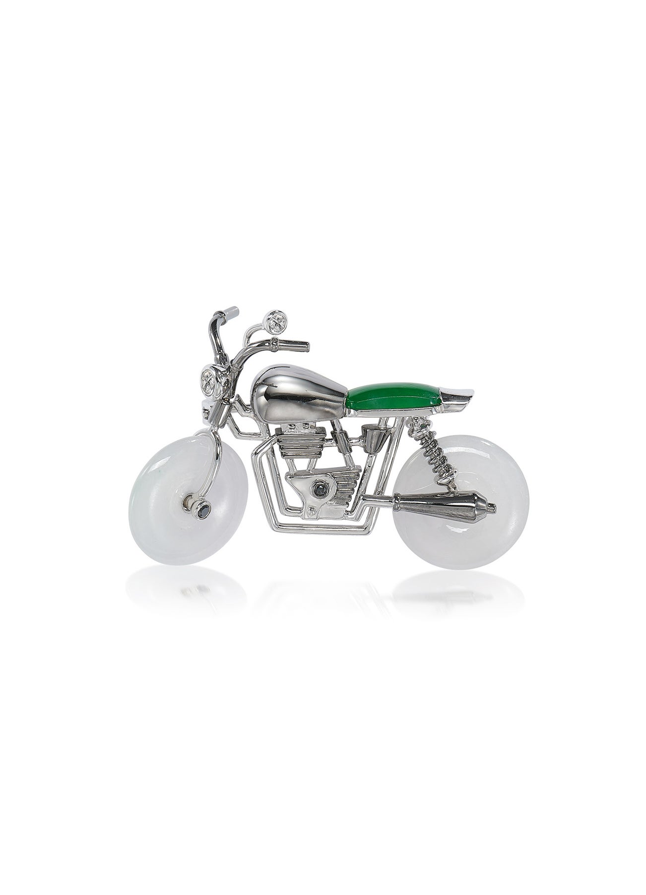 An Icy Jadeite, Jadeite and Gem-set 'Motorbike' Brooch