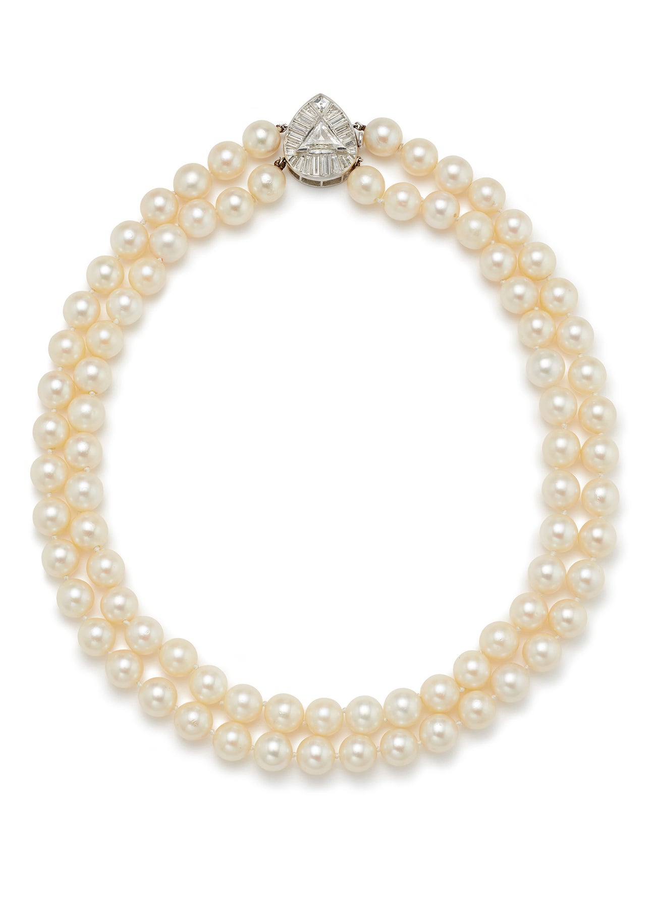 A Cultured Pearl, Diamond and Platinum Necklace