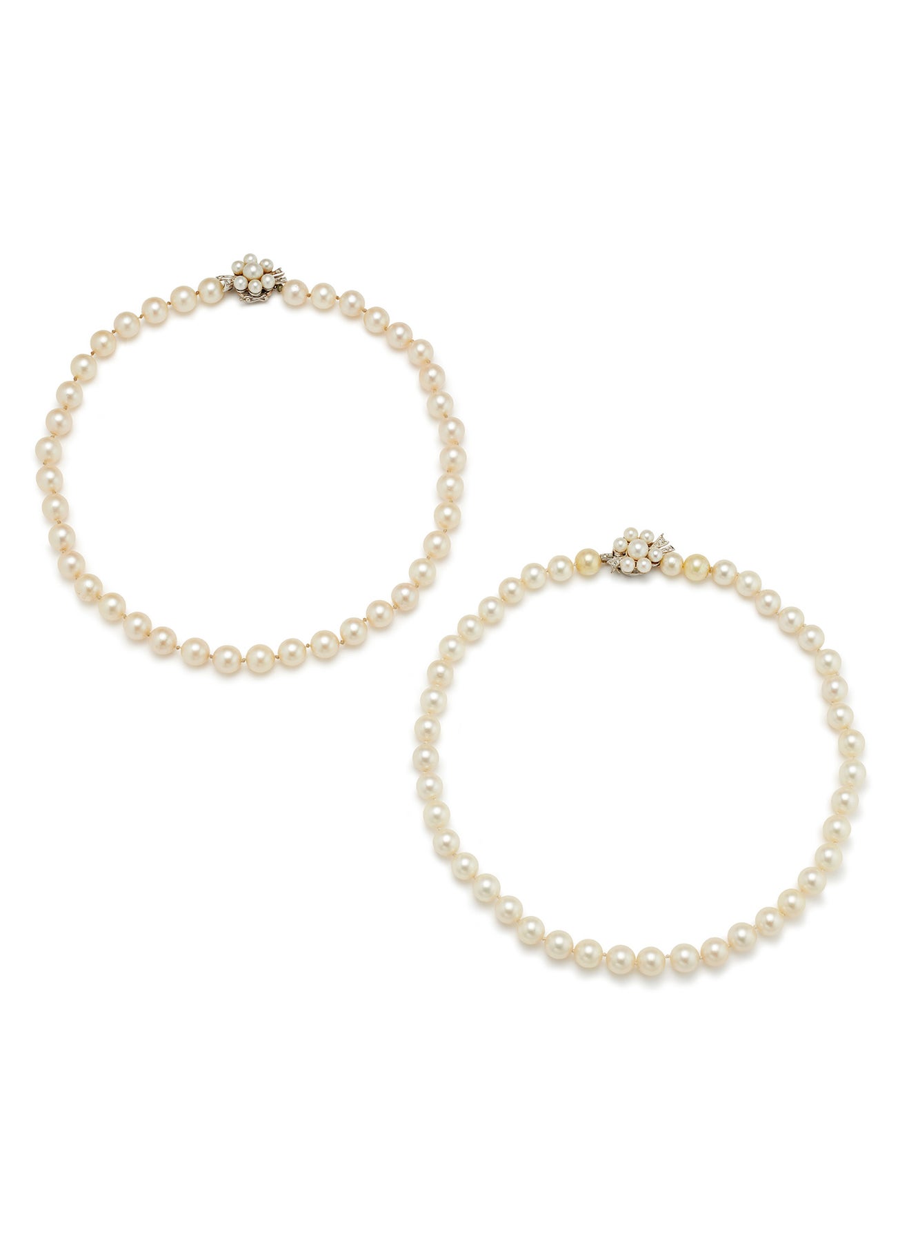 Round cultured pearls, approximately 9.20 to 8.95mm