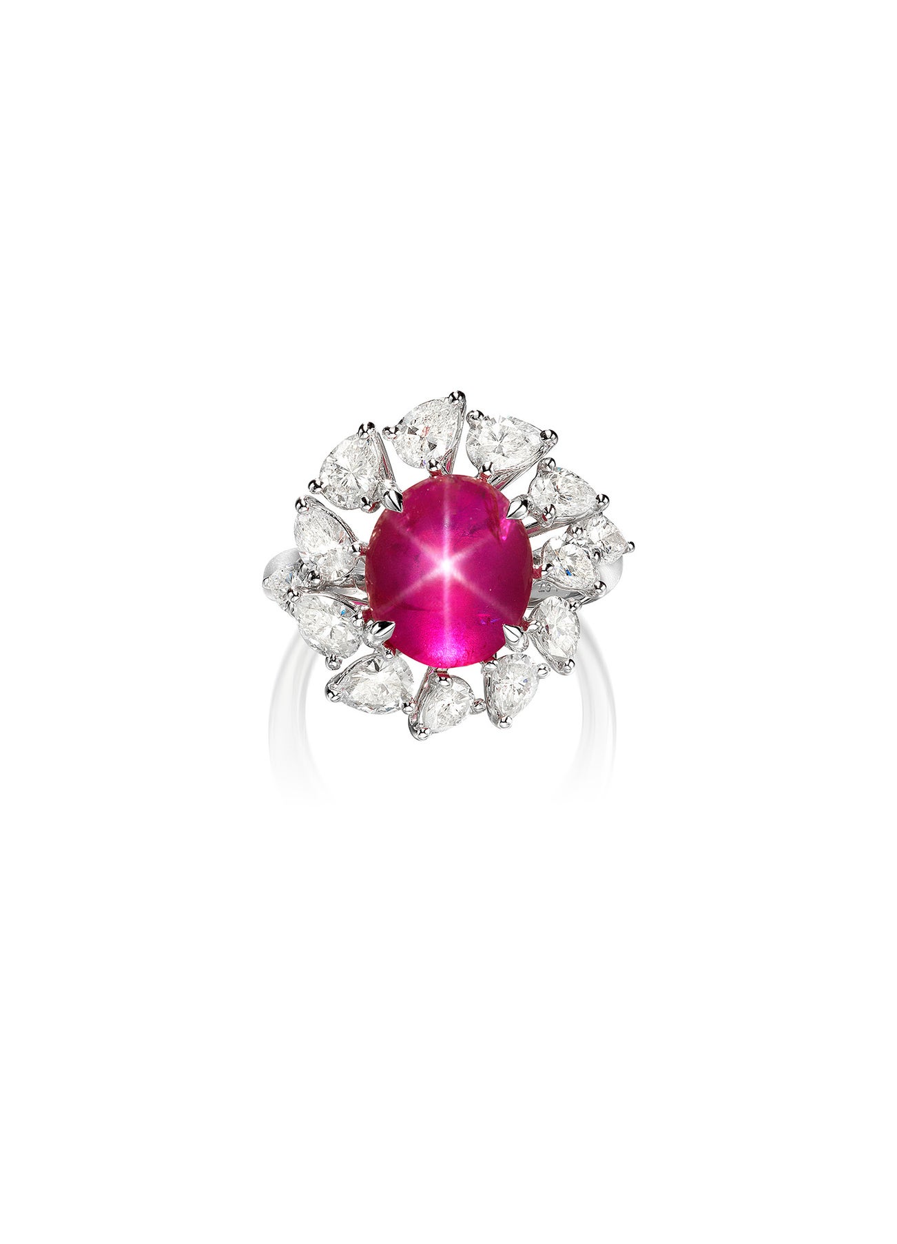 - Thirteen pear-shaped diamond surround