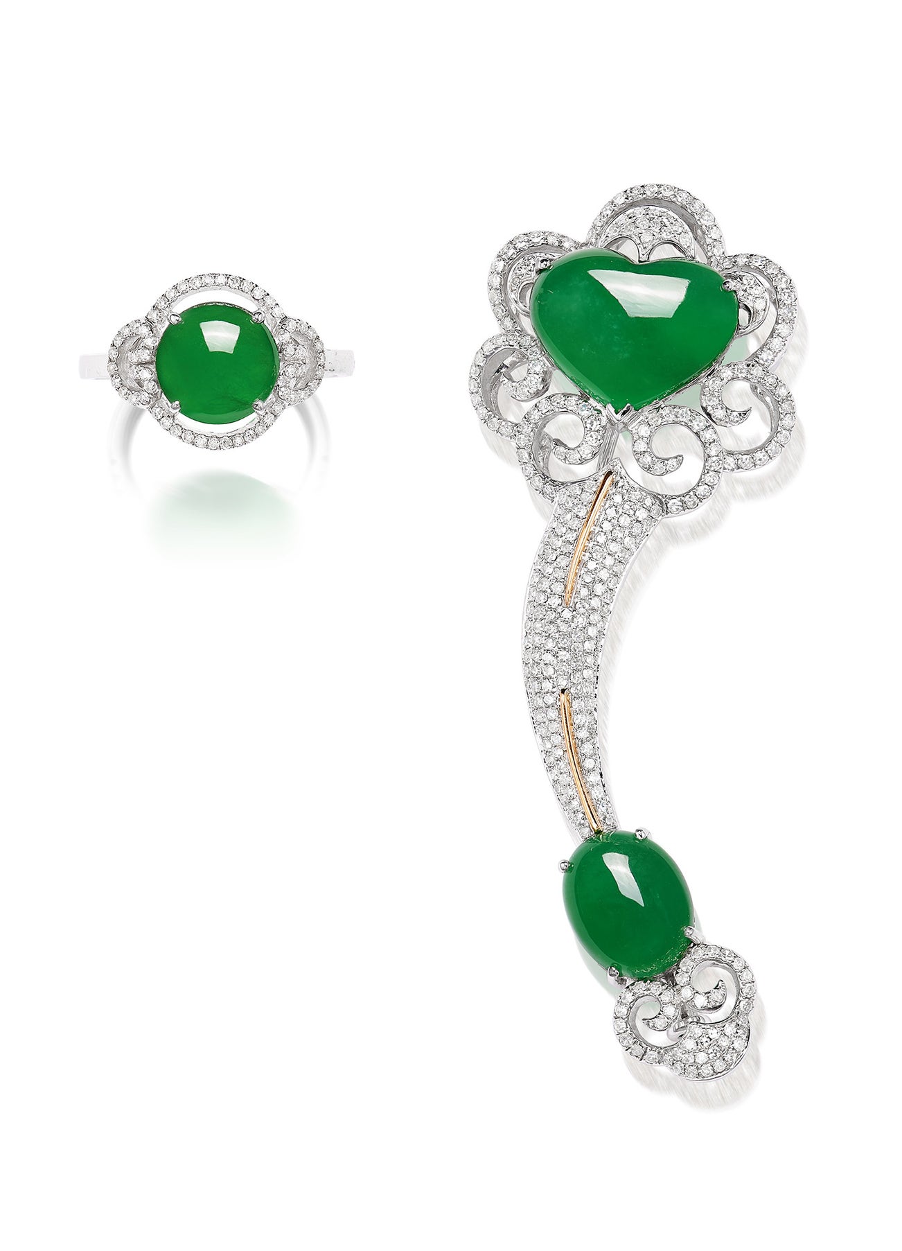 A Jadeite and Diamond Brooch and Ring
