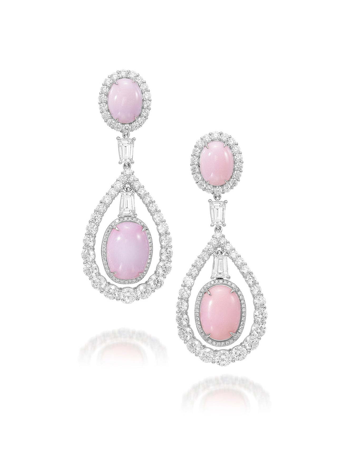 Four ovoid-shaped conch pearls, approximately 30.67 carats totalBaguette- and brilliant-cut diamonds, 9.61 carats total18K white gold<em>SSEF Report: Four conch pearls, no indications of artificial colour modification