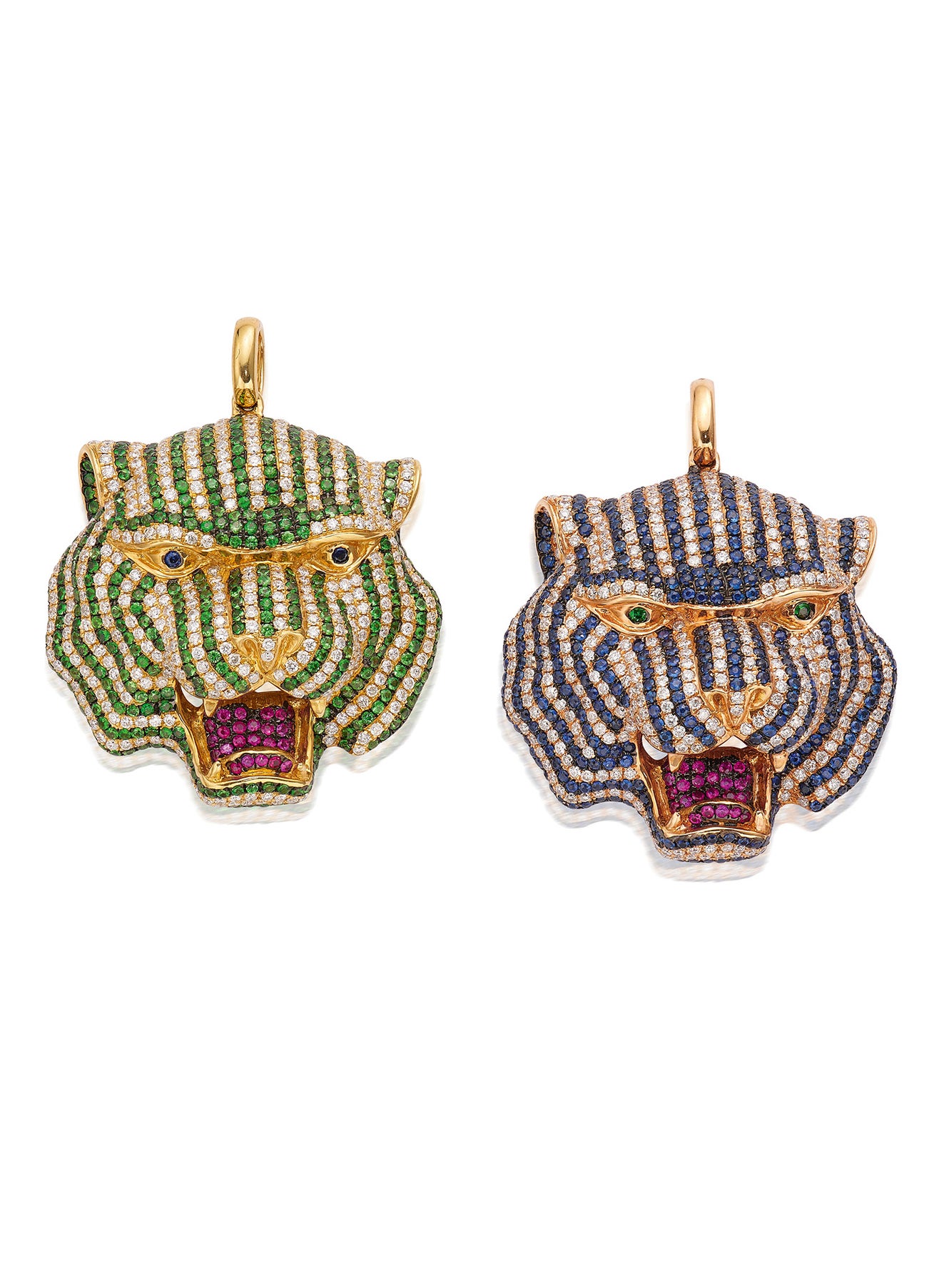 A Pair of Gem-set and Diamond 'Tiger' Pendants