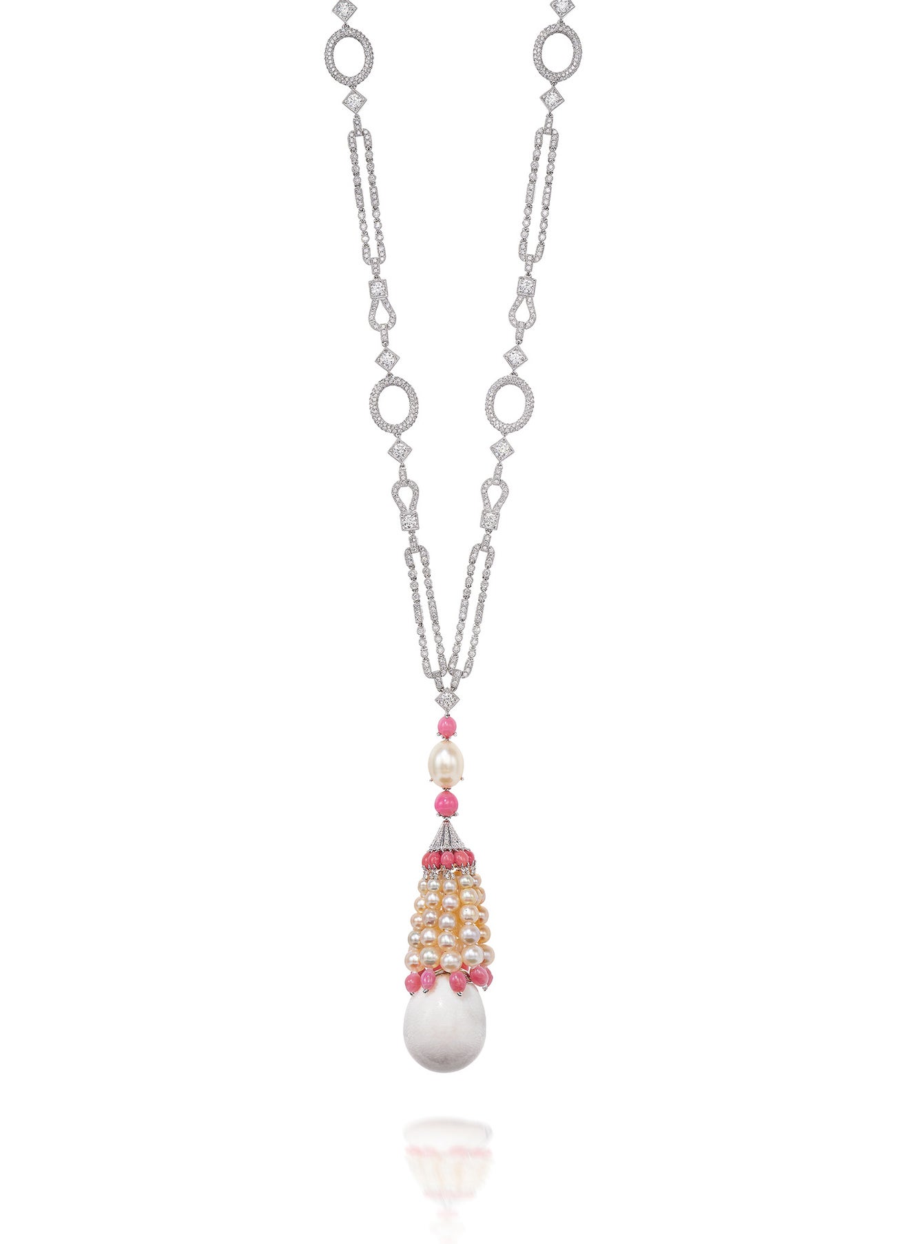A Unique Natural Pearl, Conch Pearl and Diamond Pendant Necklace