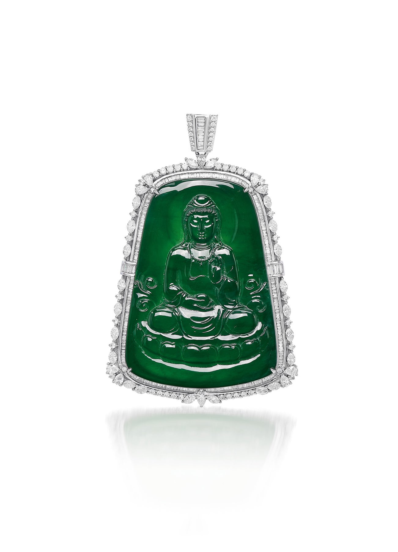 A Jadeite and Diamond 'Guan Yin' Pendant