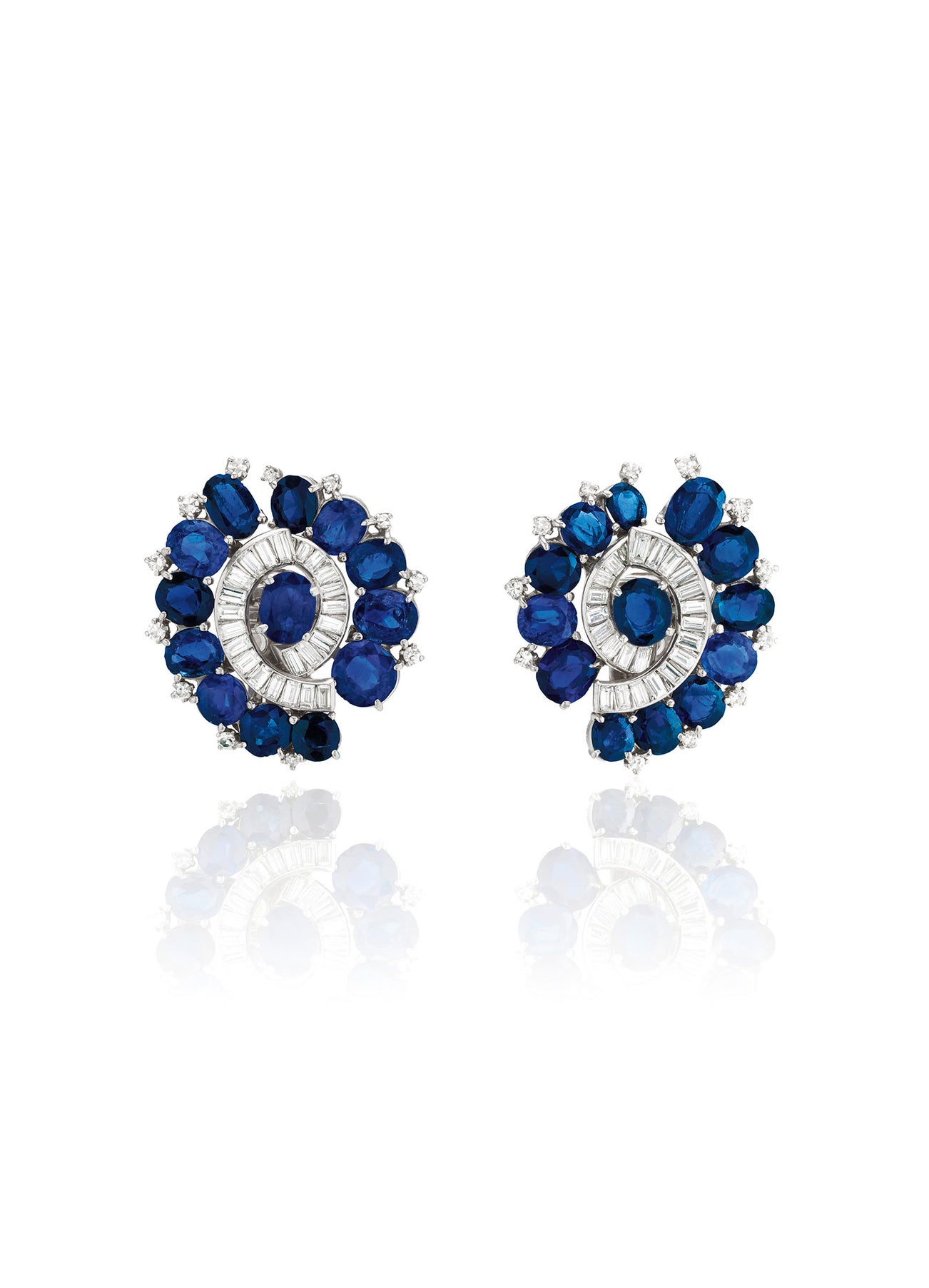 A Pair of Sapphire, Diamond and Platinum Earrings