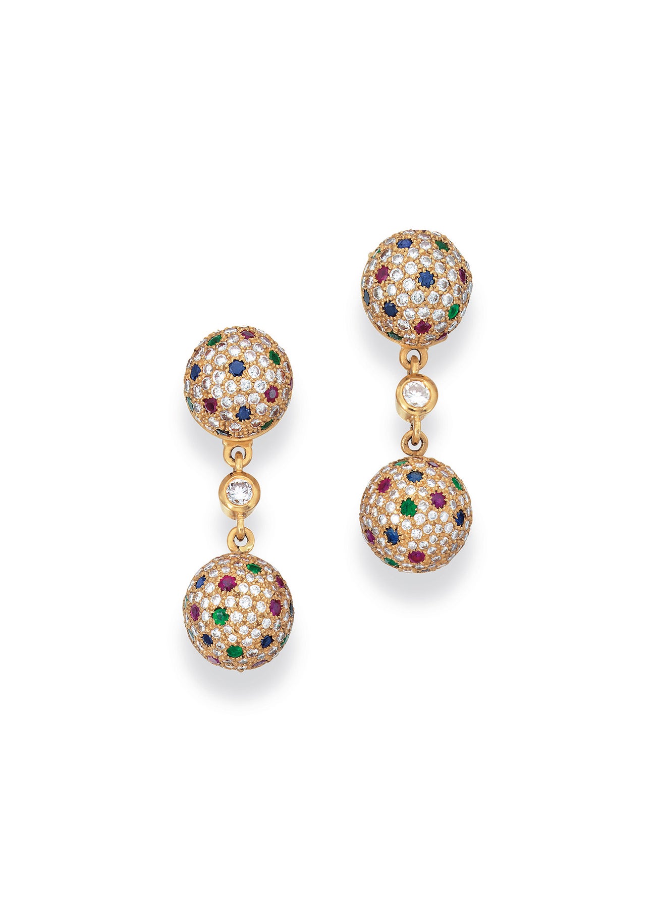 A Pair of Ruby, Emerald, Sapphire and Diamond Earrings