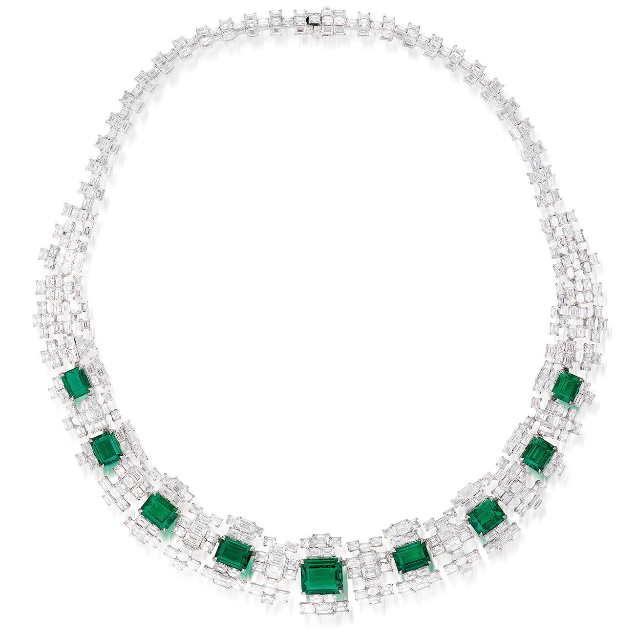 Three hundred and eighty-four emerald and fourteen brilliant-cut diamonds, 46.34 carats total18K white goldSigned Hermitage<em>GRS Report: (nine emeralds tested)