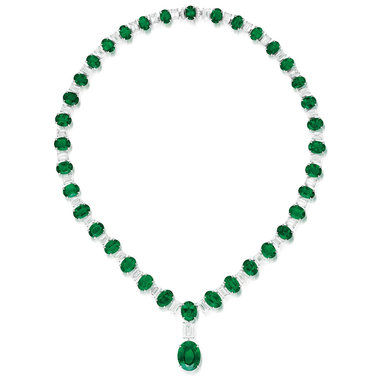 - Thirty-six oval-shaped emeralds, 52.84 carats total