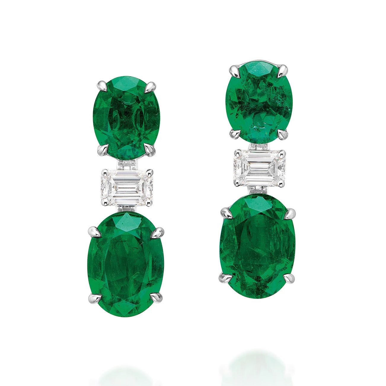 Brilliant-cut diamonds, 0.19 carat total18K white goldSigned Hermitage<em>(Emeralds)