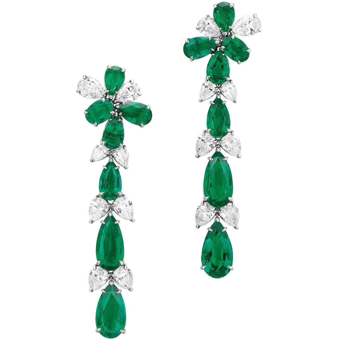 - Twelve pear and two oval-shaped emeralds, 30.46 carats total