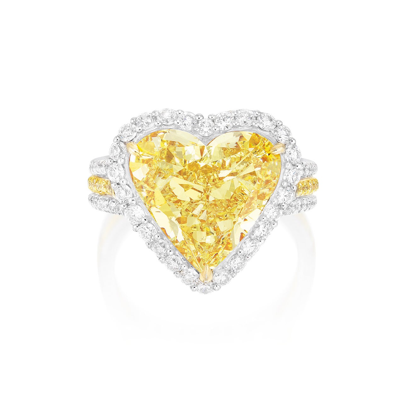 - One heart-shaped Fancy Intense Yellow diamond, 7.32 carats