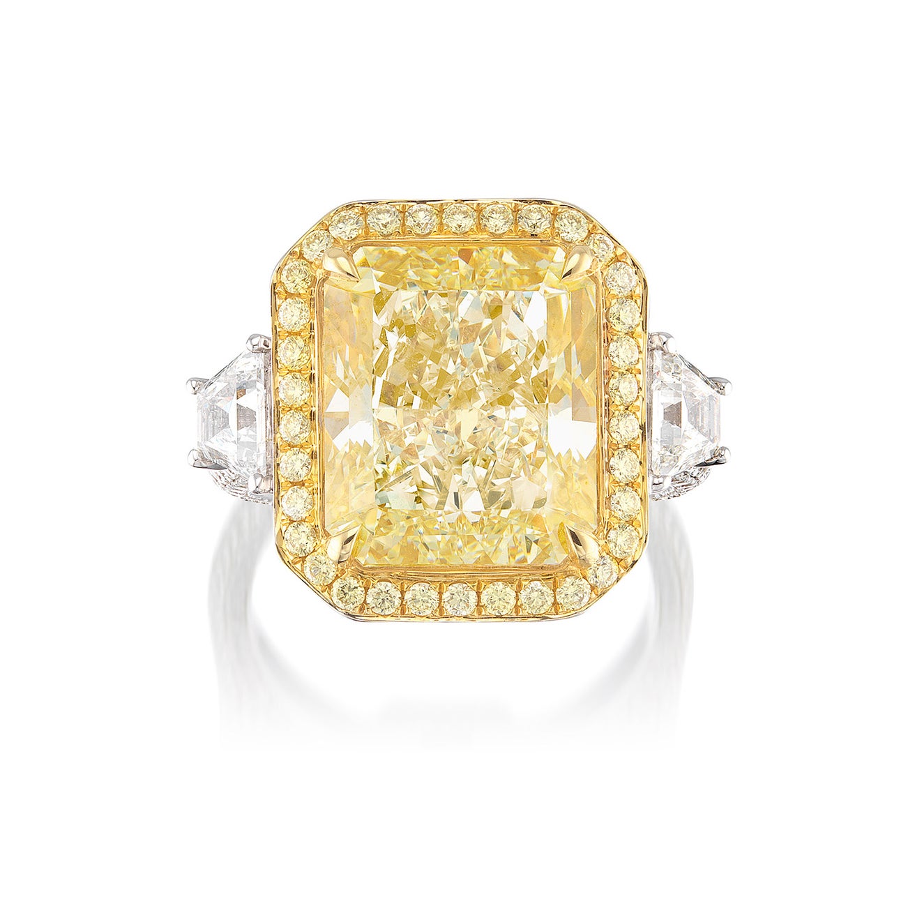 One cut-cornered rectangular-cut diamond, 10.03 caratsTwo trapezoid-cut and four hundred and thirty-two brilliant-cut diamonds, approximately 2.20 carats total