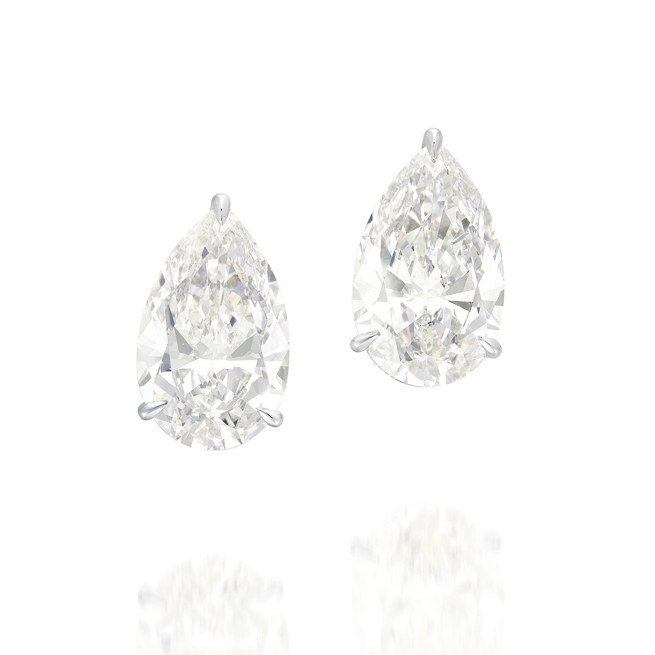 Two pear-shaped diamonds, 5.01 and 5.01 carats respectively18K white gold<em>GIA Report: I colour, VVS2 clarity, Excellent Polish and Symmetry