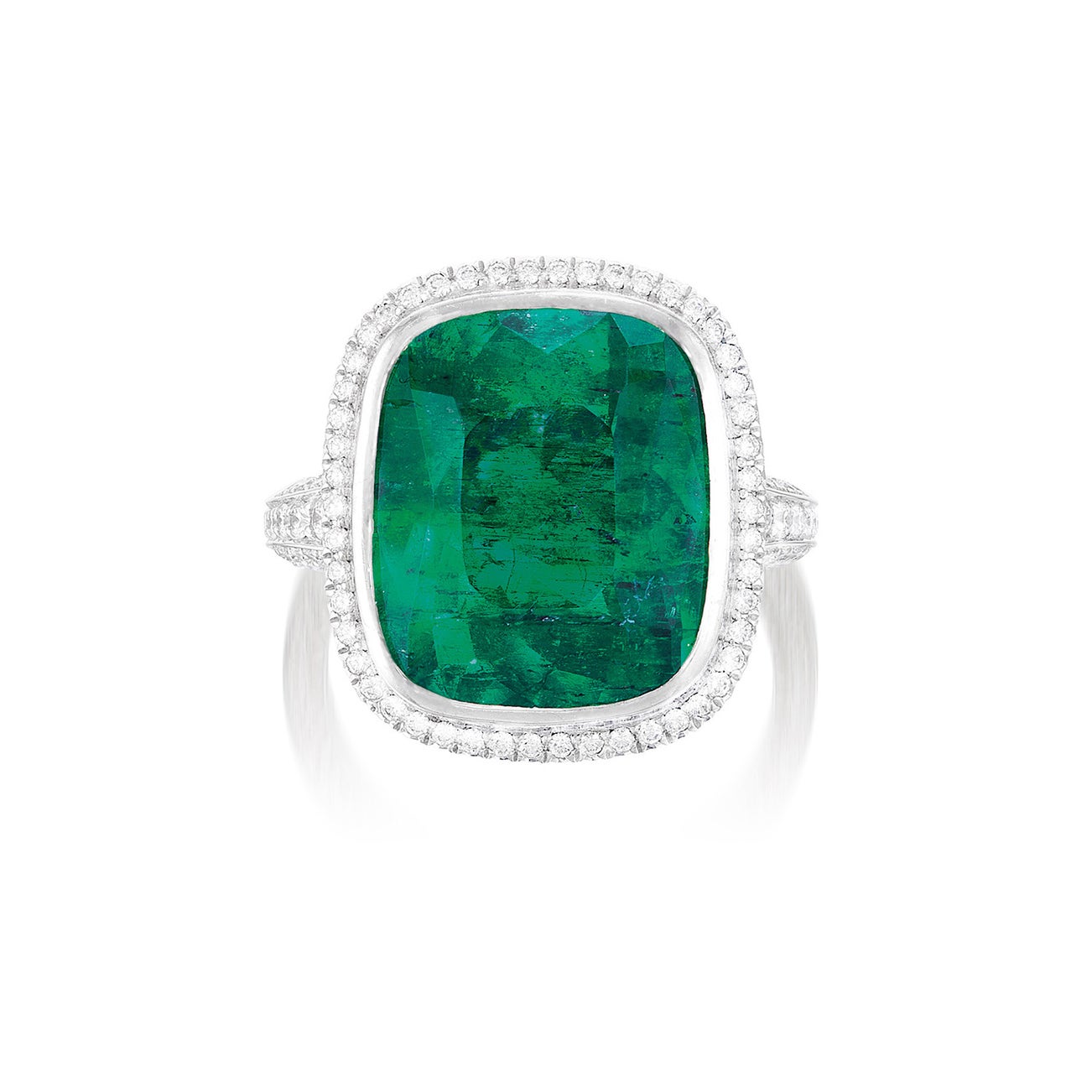 - One cushion-shaped emerald, 7.67 carats