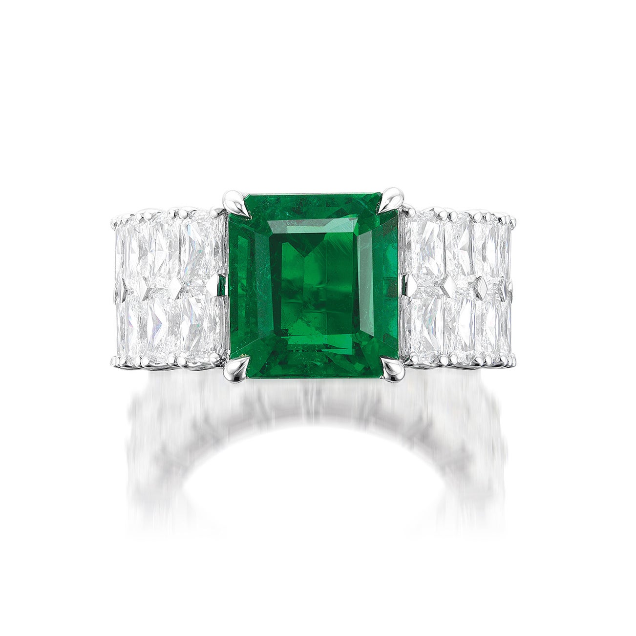 One octagonal step-cut emerald, 4.10 caratsThirty-six radiant-cut diamonds, 8.67 carats total18K white goldSigned Hermitage<em>GRS Report: Zambia, with gemological evidence of minor clarity enhancement