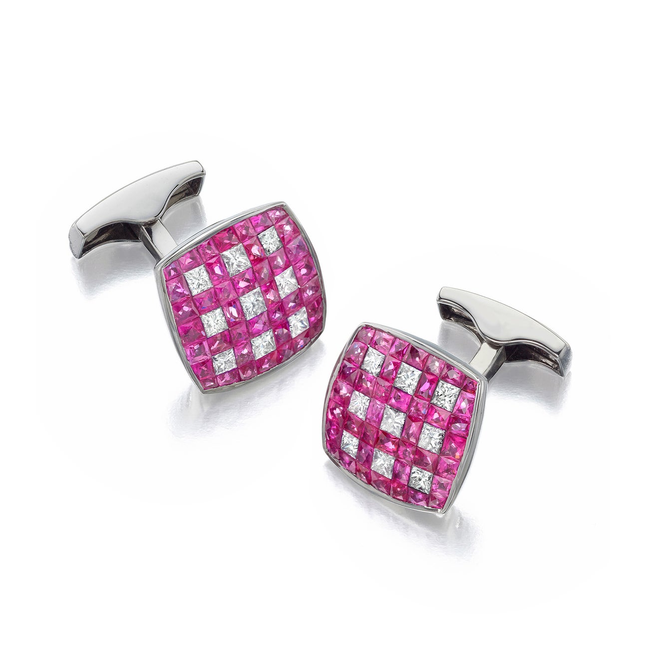 A Pair of Ruby, Diamond, and Gray Gold Cufflinks
