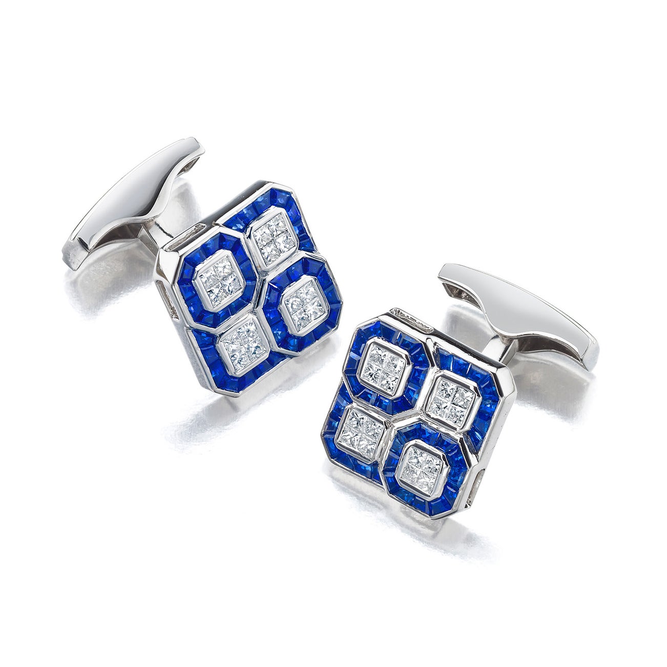 A Pair of Sapphire, Diamond, and White Gold Cufflinks