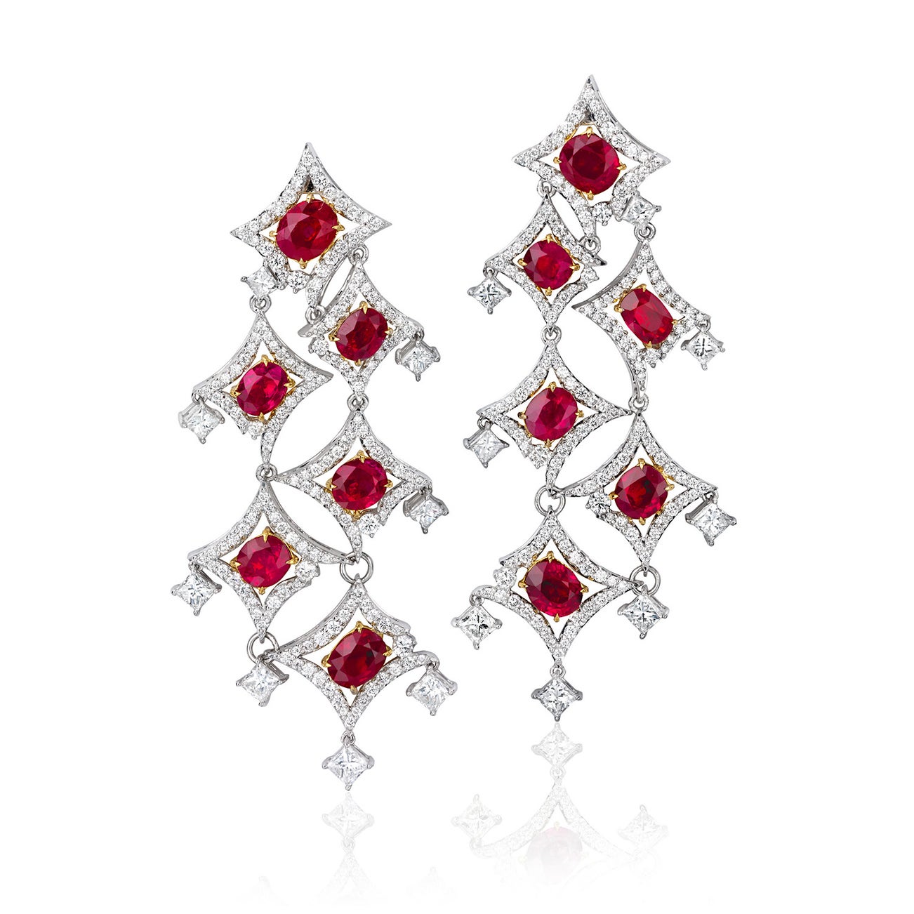 A Pair of Ruby, Diamond, and Bi-Colored Gold Earrings