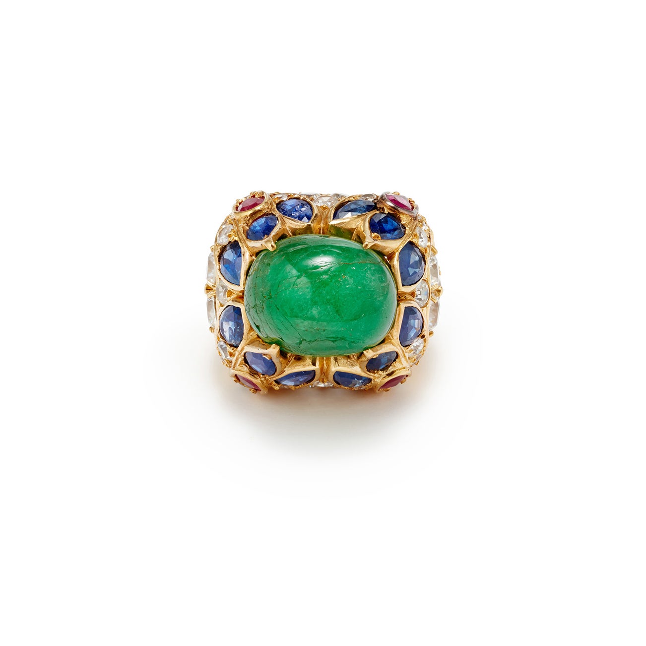 An Emerald, Gem-Set, Cubic Zirconia, and Gold Ring