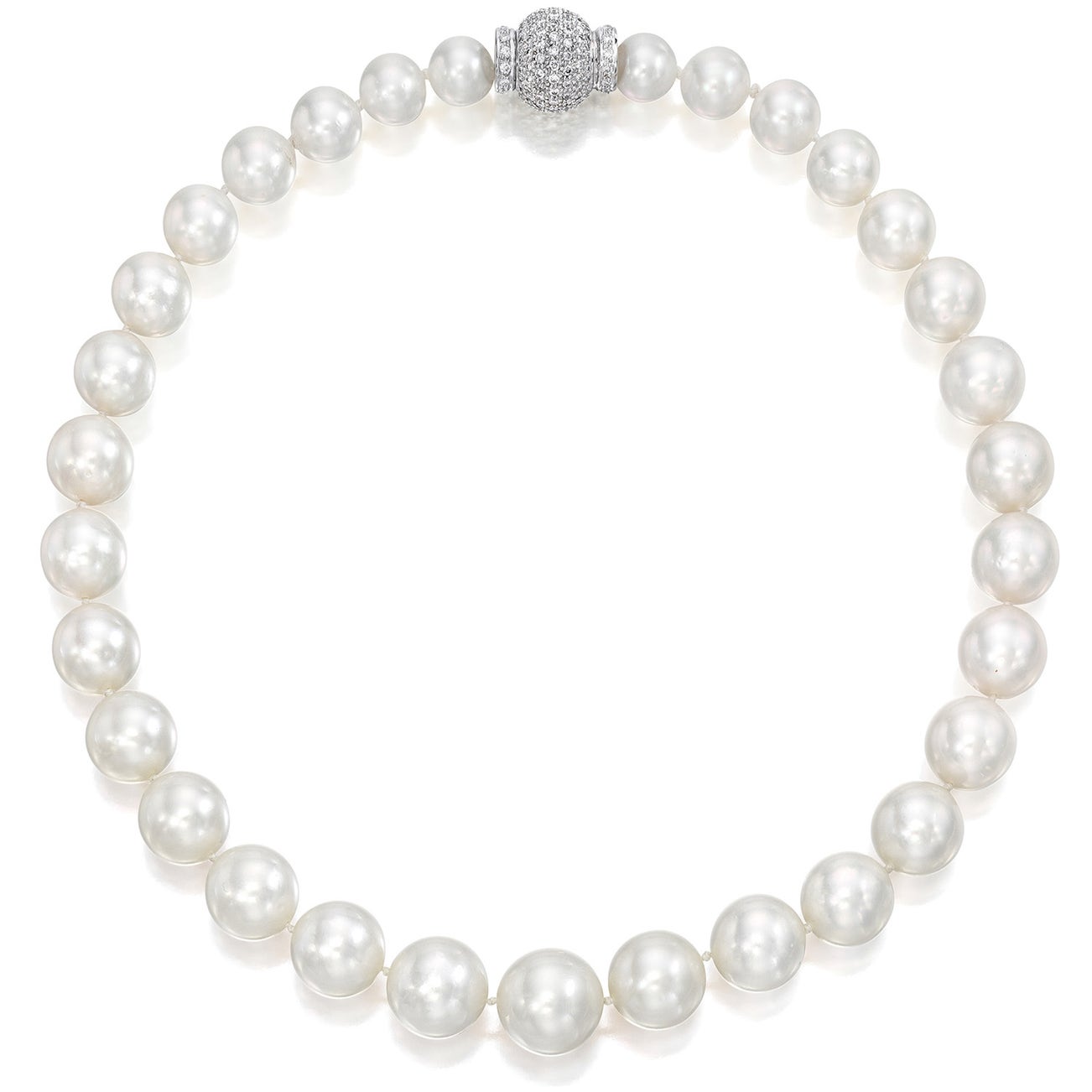 South Sea cultured pearls, measuring approximately 10.10 to 16.25 mm.