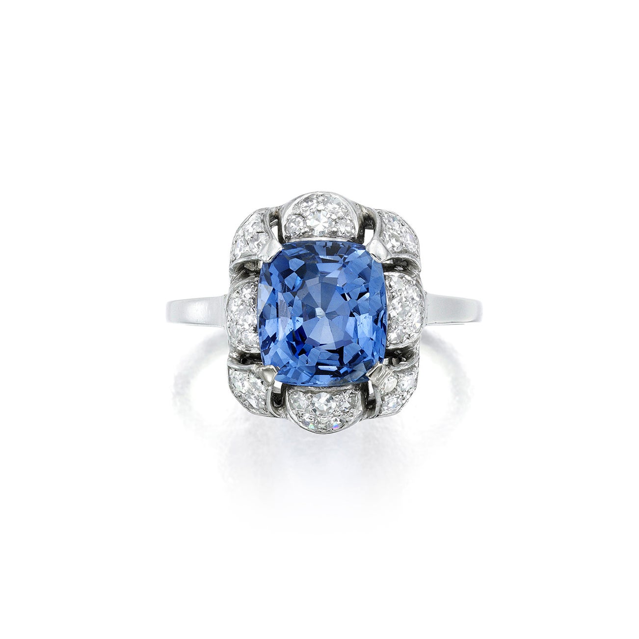 Cushion-shaped modified brilliant-cut sapphire, approximately 4.75 cts.
