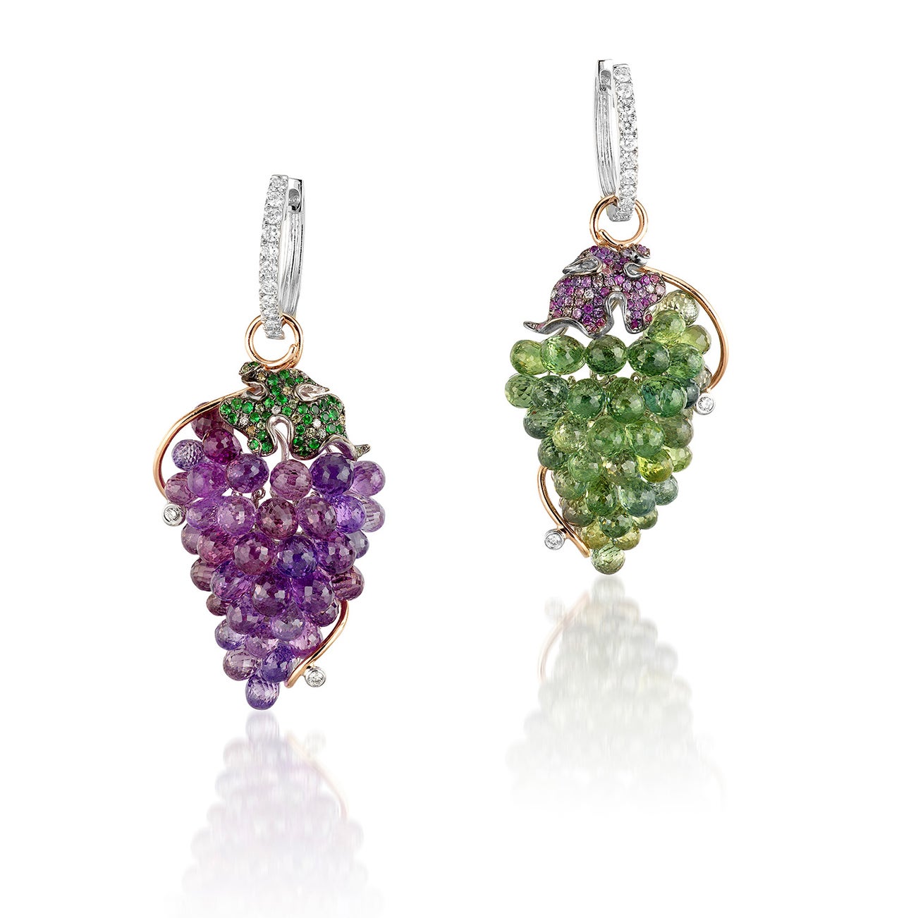 A Pair of Gem-set and Diamond 'Grape' Earrings