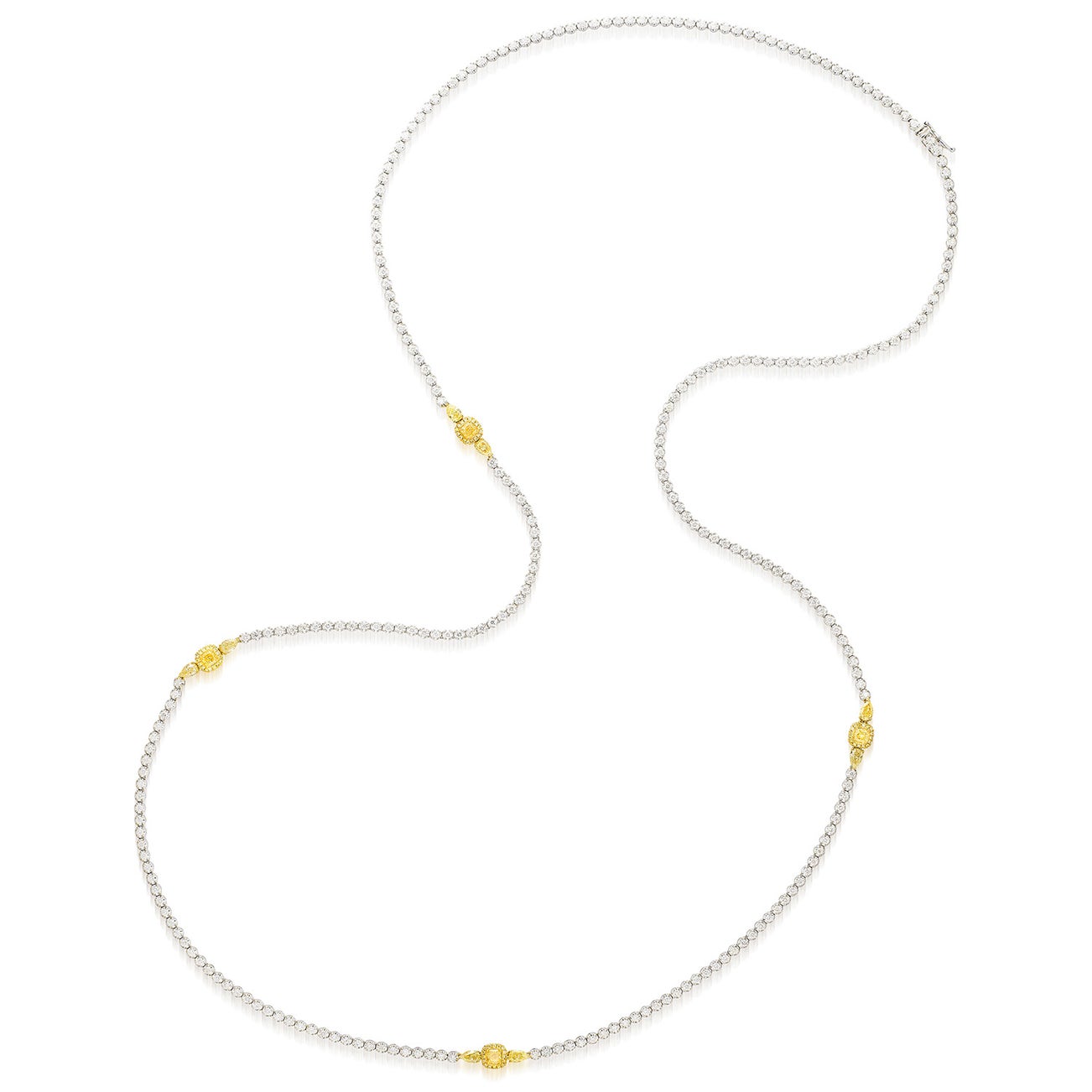 - Four cushion-shaped and eight pear-shaped yellow diamonds, 3.13 carats total