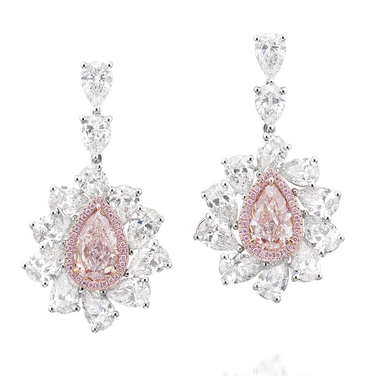 One pear-shaped Light Brown-Pink diamond, 2.36 caratsTwenty-four pear-shaped diamond surround, approximately 11.00 carats total