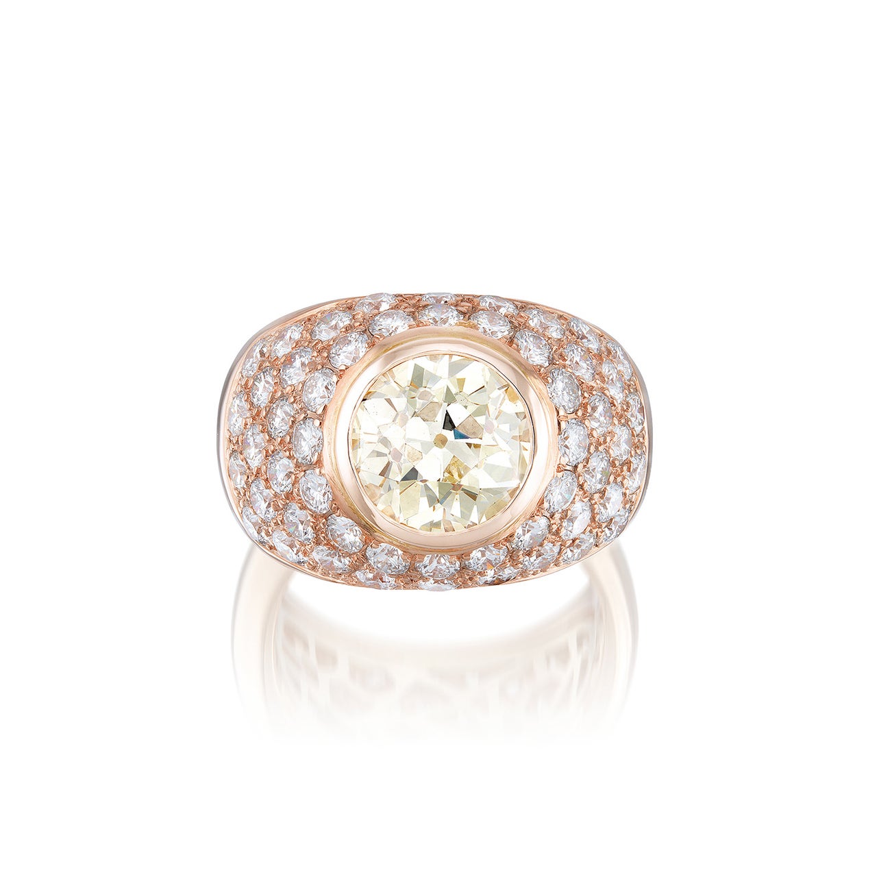 One old mine-cut diamond, 5.82 caratsFifty-two brilliant-cut diamonds, approximately 3.50 carats total18K pink gold<em>GIA Report: M colour, VS2 clarity</em>