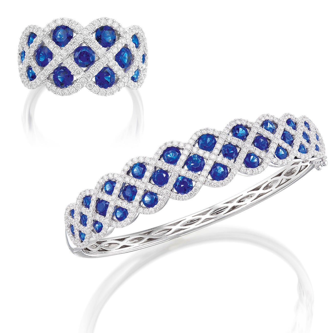 A Set of Sapphire and Diamond Bangle and Ring
