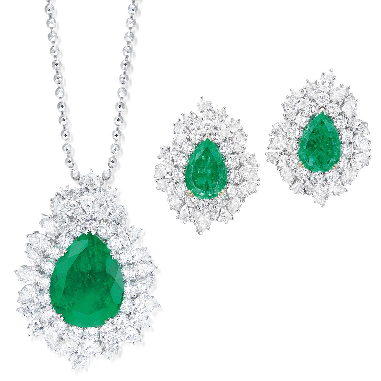 - Two pear-shaped emeralds, 12.13 carats