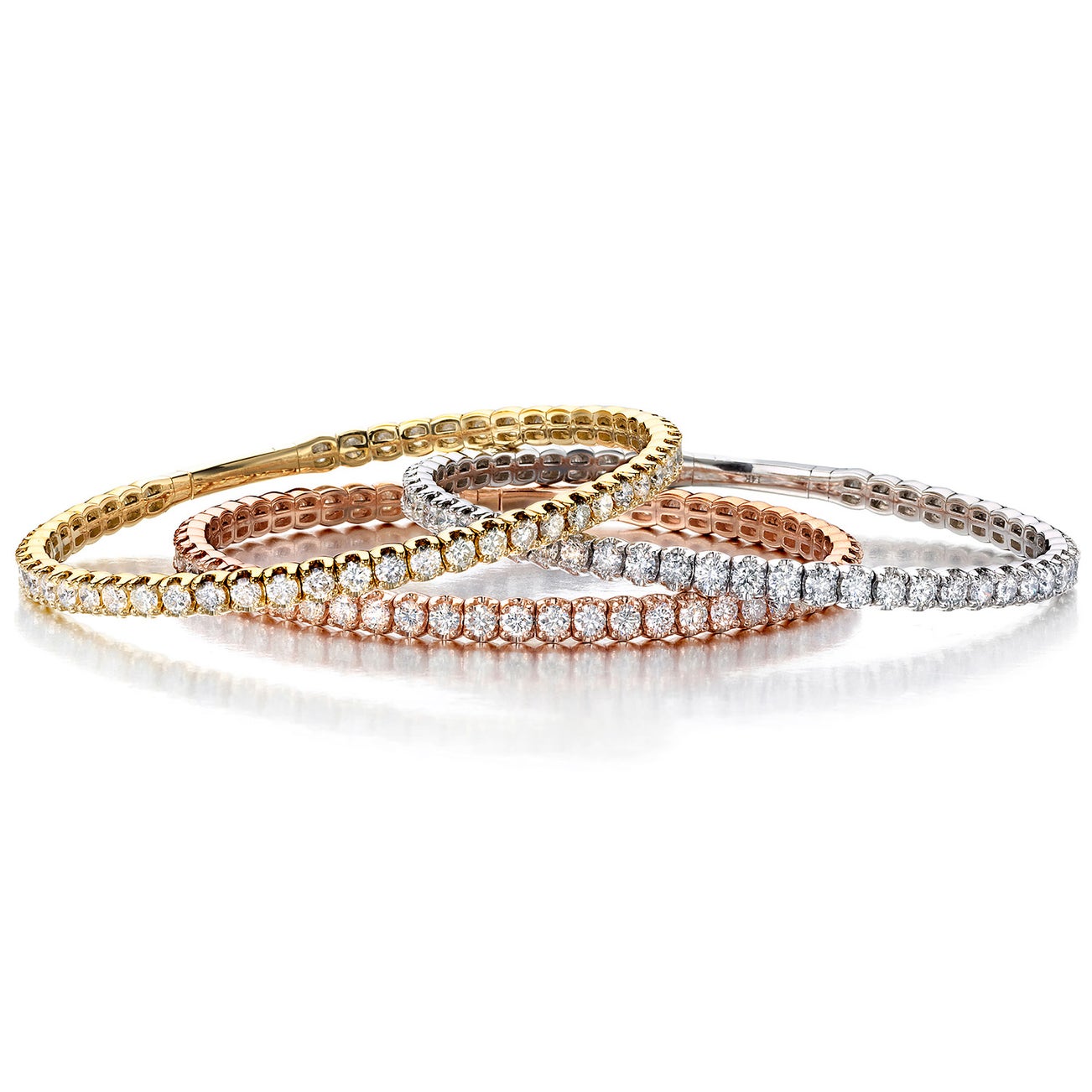 18K yellow, white, and rose gold, inner circumference approximately 7 inches