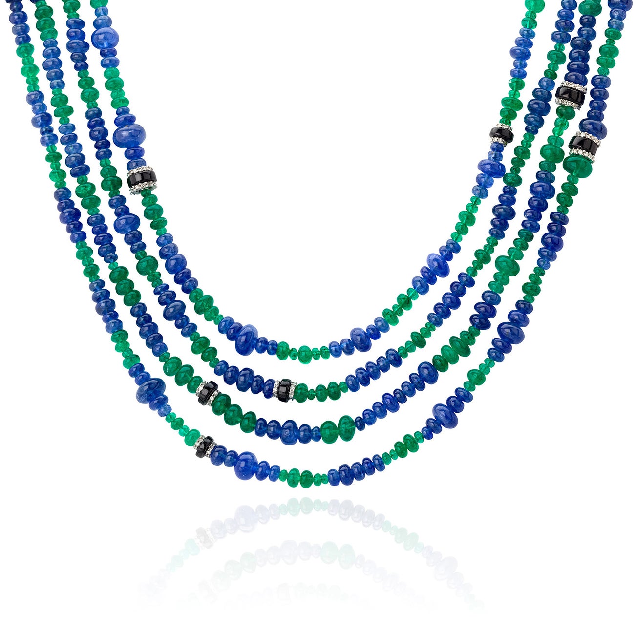 An Emerald, Sapphire, Black Spinel, Diamond, and White Gold Necklace
