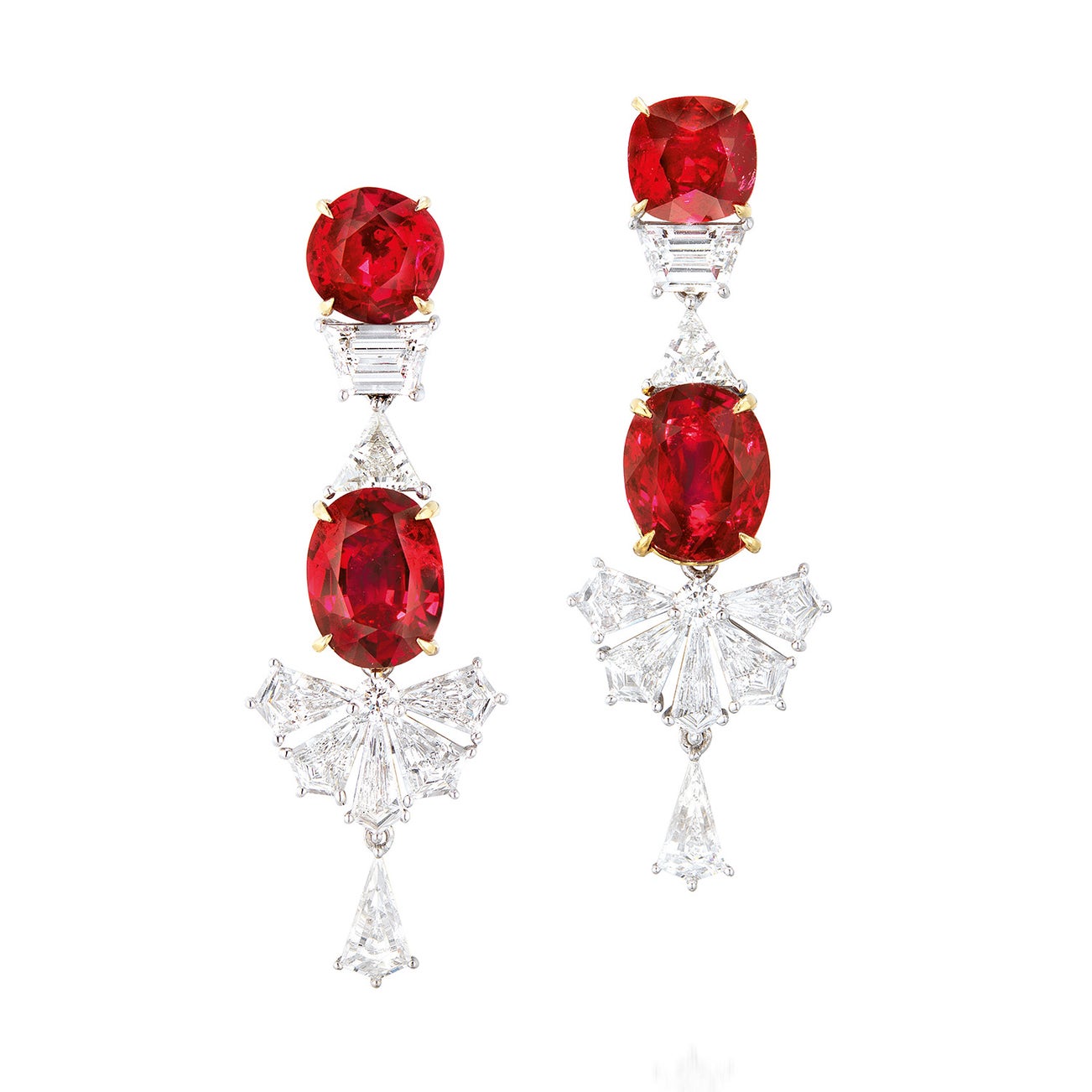 - Two oval-shaped rubies, 2.01 and 1.99 carats respectively