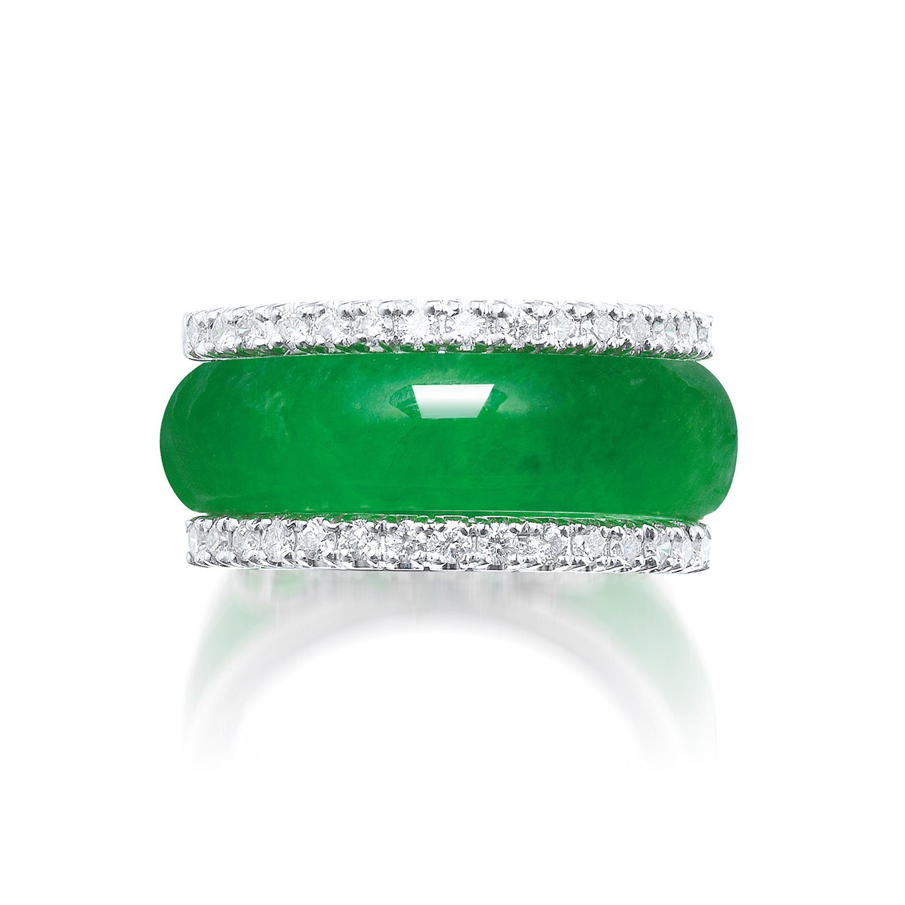 Thirty brilliant-cut diamond ring jacket18K white gold<em>Hong Kong Jade & Stone Laboratory Report: Type A Jadeite, natural colour without any resin</em>