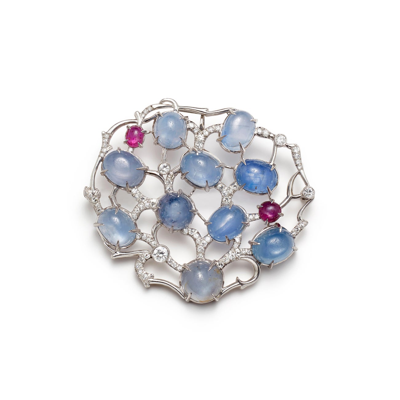 A Star Sapphire, Star Ruby, Diamond, and Platinum Pendant/Brooch