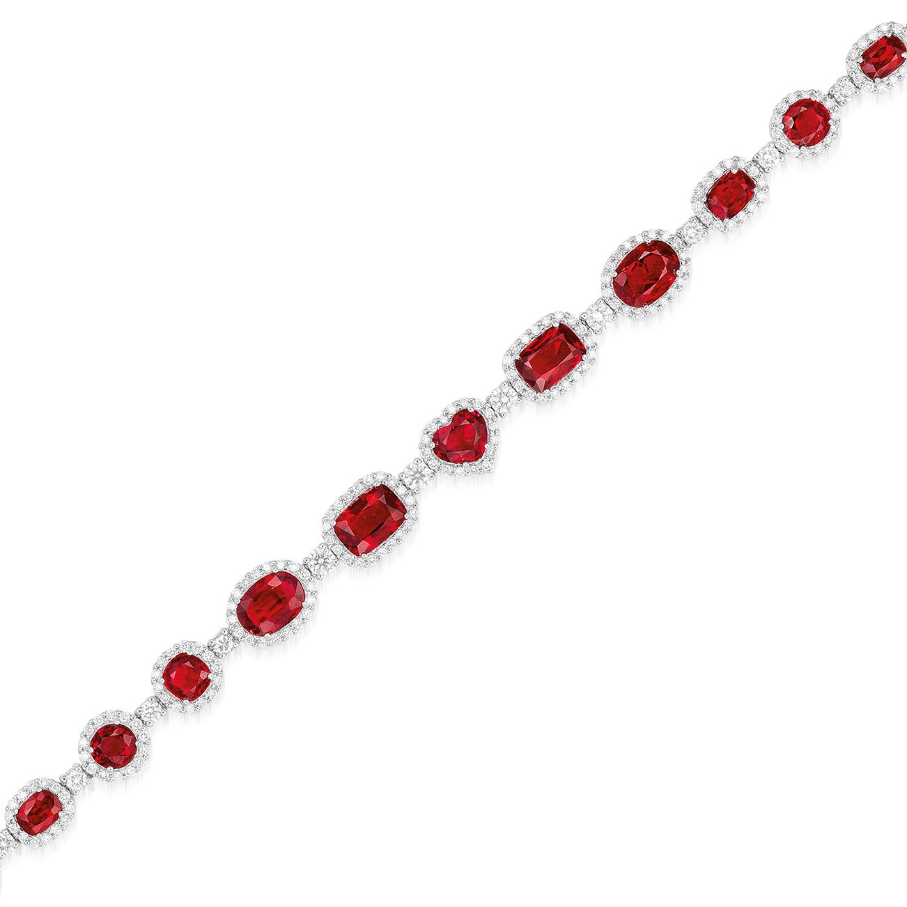 Thirteen variously cut red spinels, 17.12 carats totalBrilliant-cut diamonds18K white gold<em>GRS Report: Burma, Vivid Red to Red colour, ten spinels with no indication of thermal treatment, three spinels with gemological evidence of heating</em>