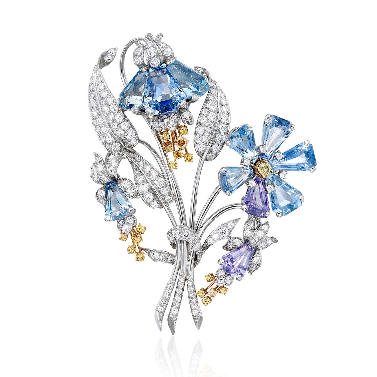 A Sapphire, Colored Diamond, Diamond, and Platinum Clip