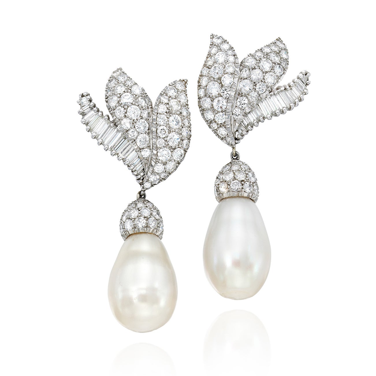 Drop pearls, A. 13.07 x 12.88 mm. B. 13.33 mm.