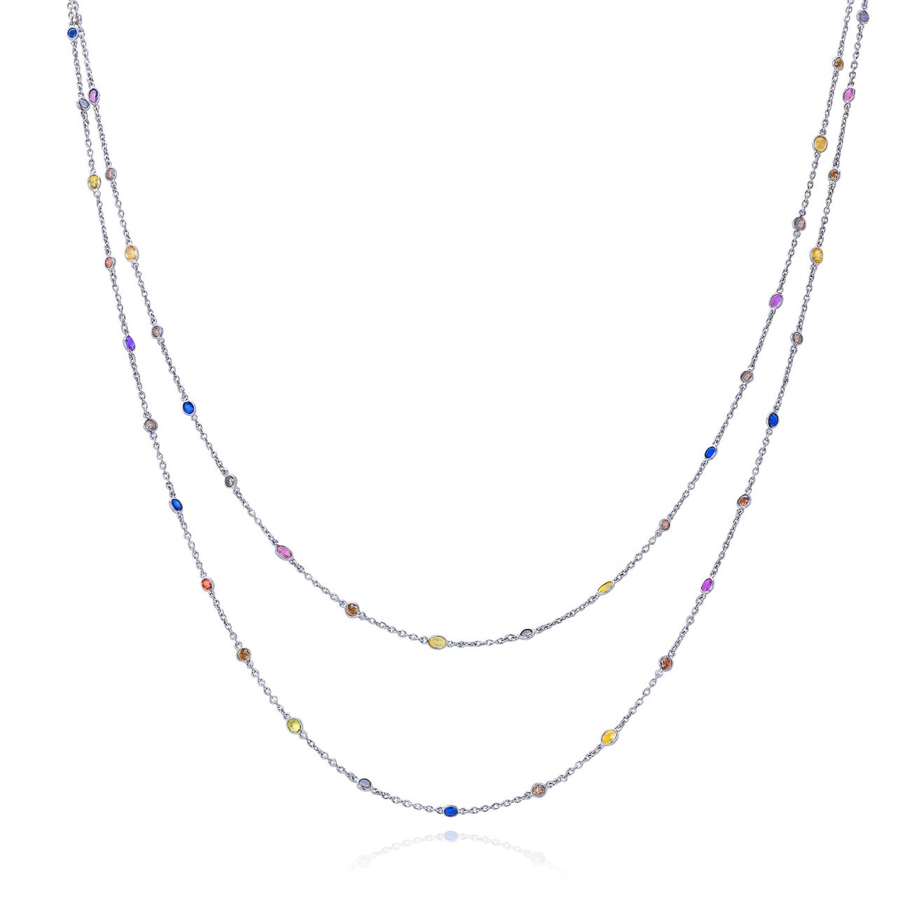 A Colored Diamond, Multi-Colored Sapphire, and Platinum Necklace