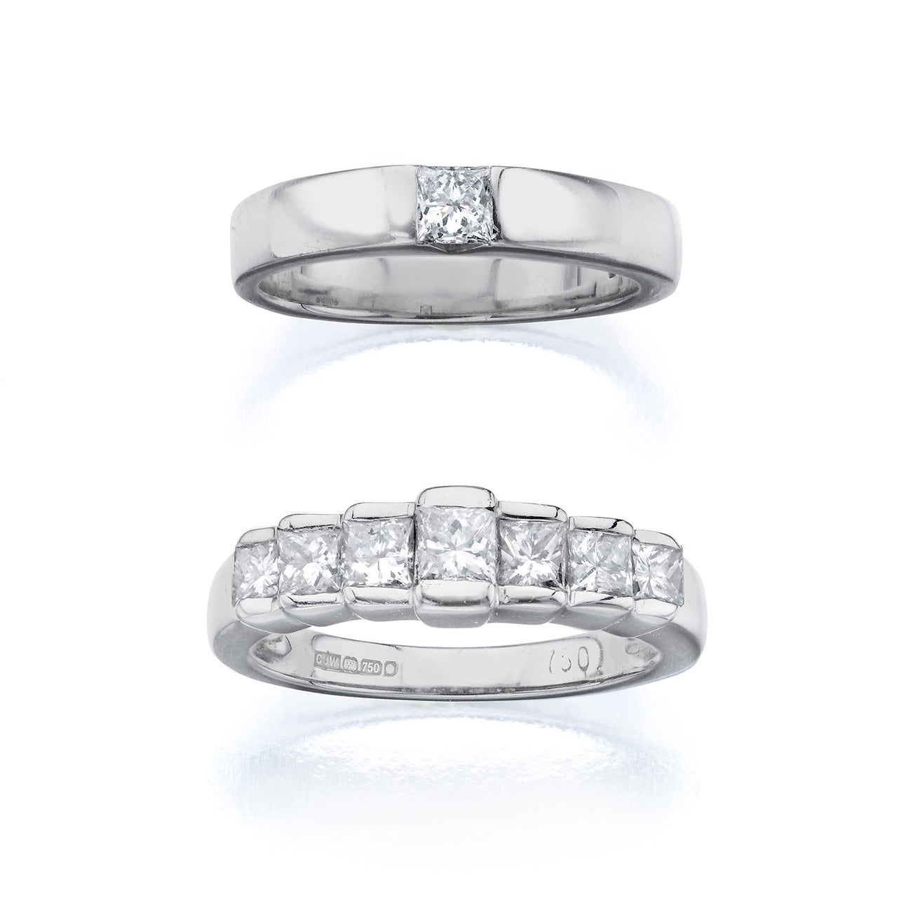 18K white gold, size 6.25 and 6.75 respectively