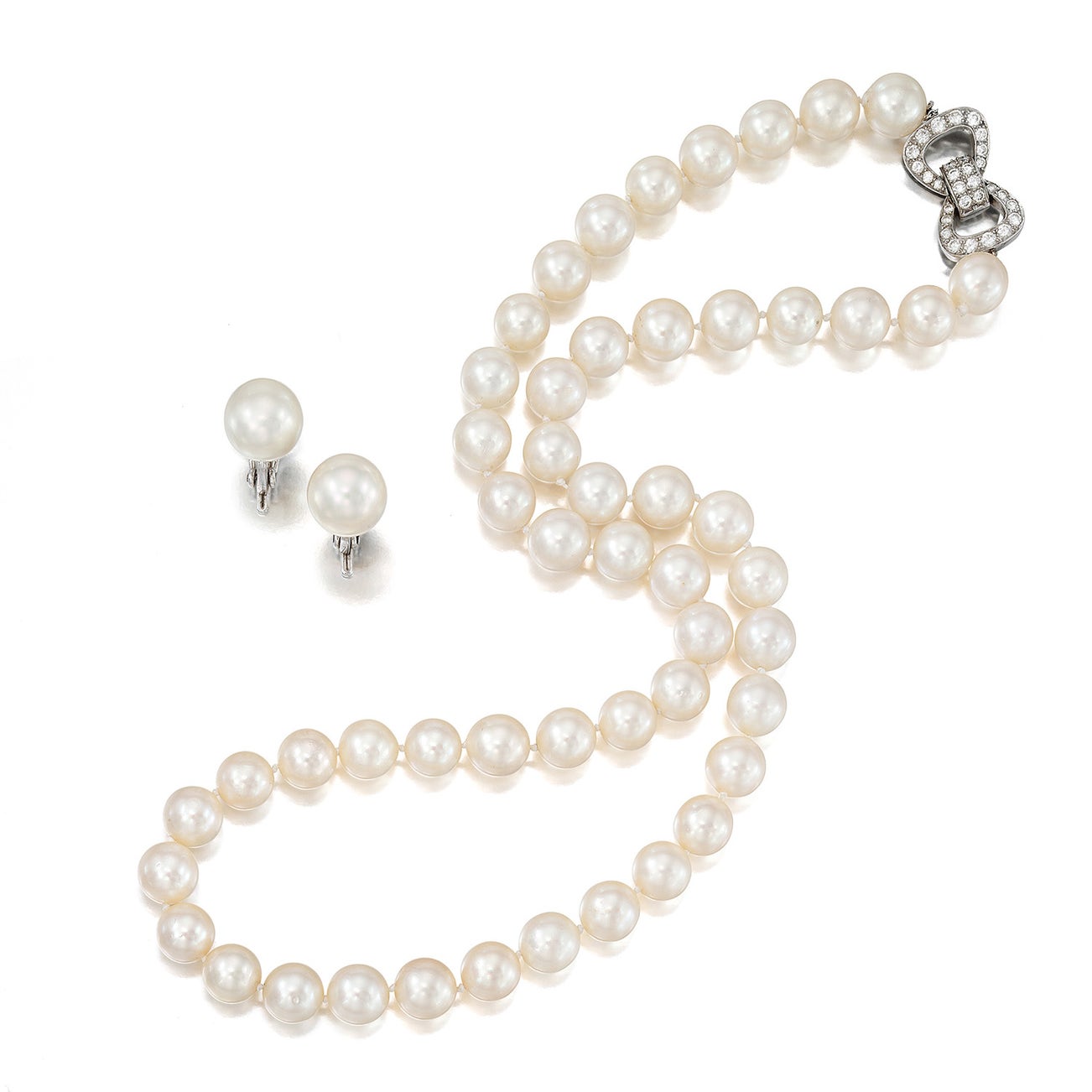 A Diamond, Cultured Pearl, and Platinum Pearl Set