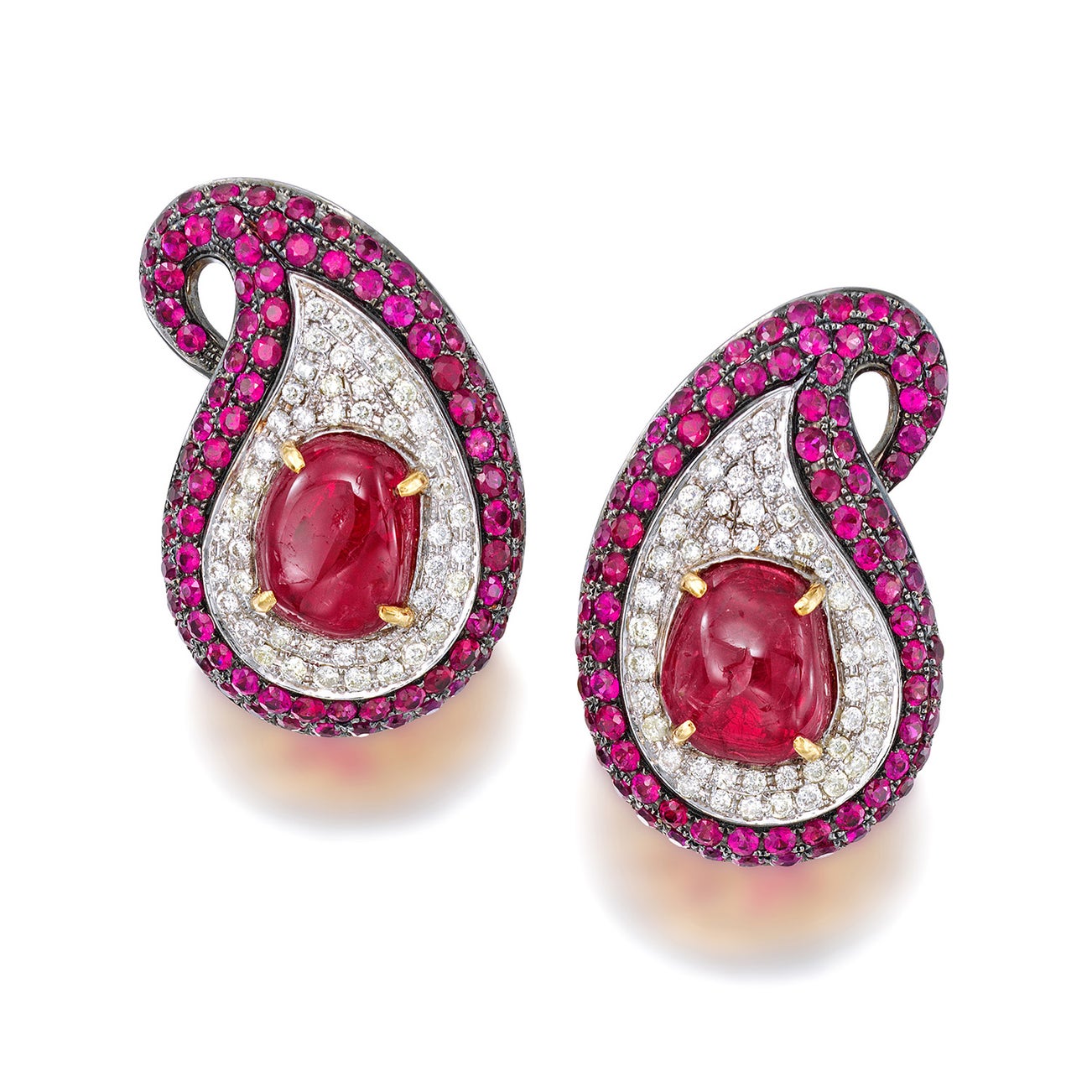 A Pair of Ruby, Diamond, and Bi-Colored Gold Earclips